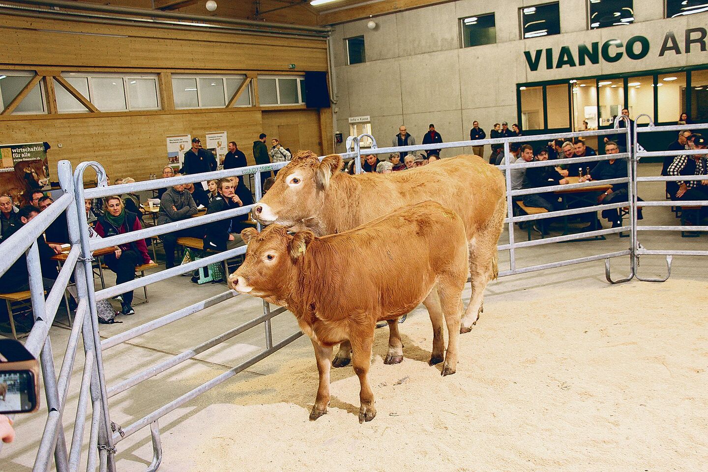 Die Fleischrinder-Auktion startete mit zwei reinrassigen Limousin-Kühen mitsamt Kälbern. Die 3-jährige Kuh Pipa vom Züchter Walter Meyer aus Kirchlindach BE wurde samt 10-monatiger Tochter für 6300 Franken verkauft. Pipa war die teuerste Kuh des Abends. Die grossformatige Kuh ist trächtig vom französischen Stier Pebene. Die 6-jährige Kuh Baleika von Benno Sollberger aus Ochlenberg BE galt mitsamt dem Kalb 6200…