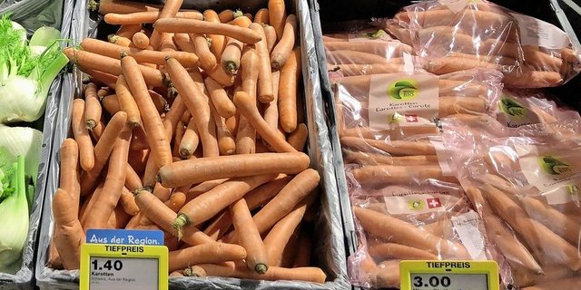In der Migros kostet Biomilch unter dem eigenen Bio-Label Fr. 1.90/Liter, bei Coop sind es Fr. 1.95/Liter mit Knospe. Denner unterbietet beide Mitbewerber und führt neu Vollmilch mit dem Label von Bio Suisse für Fr. 1.85/Liter im Sortiment. Das erstaunt, denn bisher gab es keine Knospe-Produkte bei Denner – der Discounter setzte auf das billigere EU-Bio unter der Marke «enerBio».