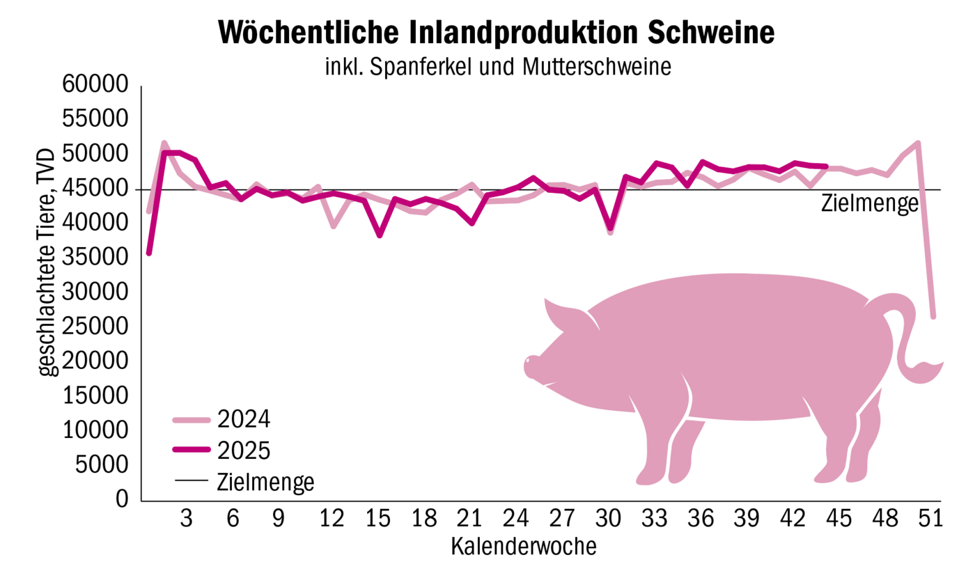 Mehr Stirnrunzeln löst die Situation auf dem Schweinemarkt aus: «Ich hätte nicht gedacht, dass wir so schnell wieder in eine Überproduktion rutschen», betonte Simon Zürcher. Derzeit können nicht mehr alle Schlachtschweine fristgerecht platziert werden, die Angebote sind zu hoch. «Sicher wird der Winter hier helfen, das Angebot bei den Jagern zu mässigen», betonte Zürcher. Allerdings machte er auch darauf aufmerksam, dass bezüglich Schlachtungen die Feiertage heuer sehr ungünstig liegen. Entsprechend der Appell an die Schweinehaltenden, dass sie rechtzeitig planen, damit nicht ein zusätzlicher Stau in den Mastställen entsteht.
