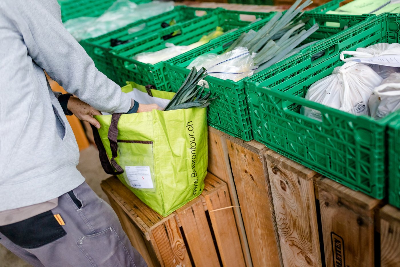 Am Donnerstagmorgen ist viel los auf dem Zieglerhof im solothurnischen Brunnenthal in der Region Bucheggberg. Bis zu 20 verschiedene Produzenten aus der Region bringen ihre Produkte zu André Ziegler, der diese mit seinem Team sortiert und die Taschen gemäss den eingegangenen Bestellungen zusammenstellt. «Bis kurz nach dem Mittag treffen alle Produkte bei uns ein und wir stellen die Taschen zusammen. Sobald sie fertig sind, bringe ich sie zur Zustellstelle der Post», sagt André Ziegler, Gründer von Buur on Tour. «Und am Freitagmorgen liefert die Post die Hofprodukte aus.»