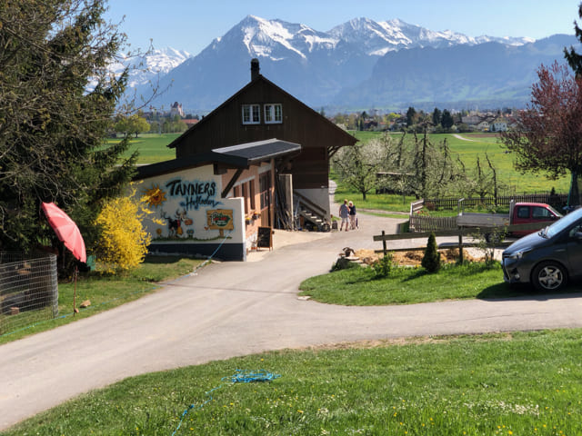 Familie Tanner hat neben dem Verkaufspunkt bei der Bäckerei Galli zwei Hofläden. Einen direkt beim Tanner-Schwarz-Hof und einen in einer alten Scheune im Dorf. Der Hofladen auf dem Hof bedienen sich die Kunden selbst.