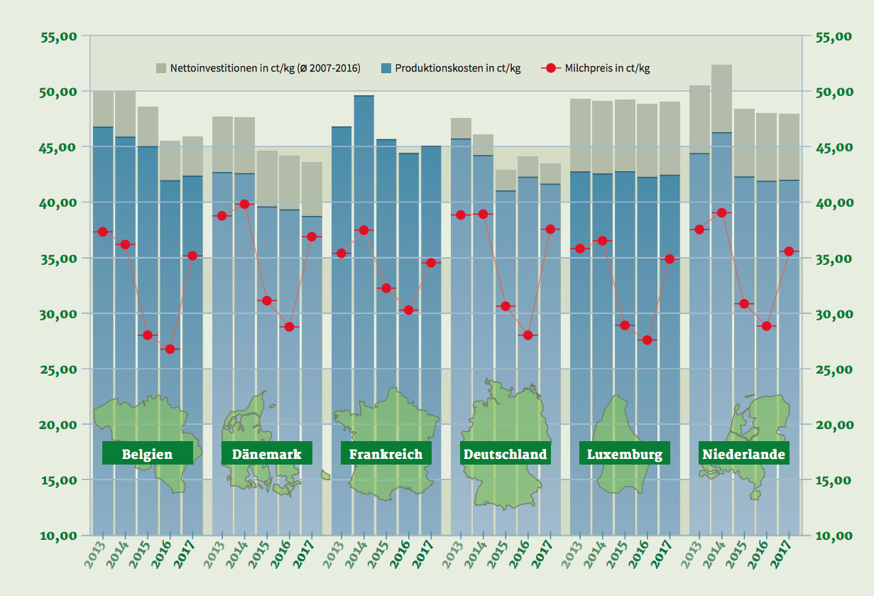 Laut einer Studie vom Büro für Agrarsoziologie und Landwirtschaft (BAL) lagen die Milchproduktionskosten im fünf-Jahres-Durchschnitt in sechs EU-Mitgliedsländern zwischen 41 und 46 Eurocents pro Kilo Milch. Demgegenüber standen Produzentenpreise von 32 bis 35 Eurocent pro Kilogramm Milch; die Produzenten in Frankreich, Deutschland, Dänemark, Belgien, Luxemburg und den Niederlanden mussten Verluste hinnehmen.