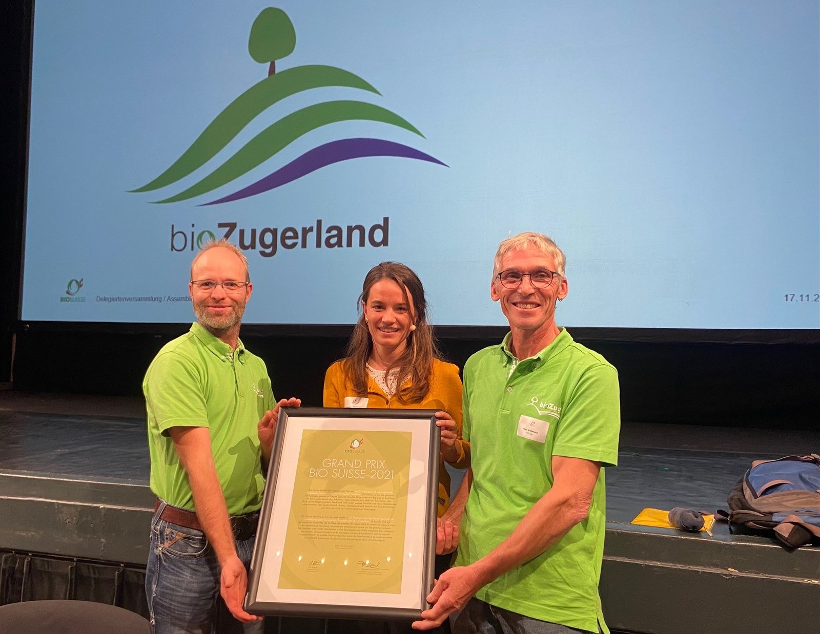 «Aus Zug für Zug» lautet der Claim der IG Bio Zugerland. Heute haben sie anlässlich der Delegiertenversammlung der Bio Suisse den Grand Prix, eine Auszeichnung für erfolgreiche Vermarktungsprojekte gewonnen.