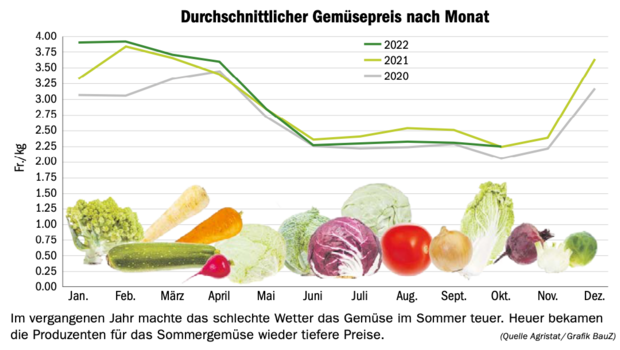 Bereits vor der inländischen Himbeersaison wurde eine grosse Menge an Importhimbeeren nachgefragt. Der Höchstwert lag im Mai bei 900 Tonnen importierten frischen Himbeeren.