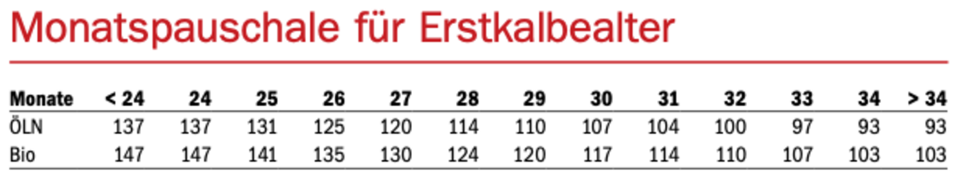 - Einmonatige Biokälber aus Milchviehhaltung: Fr. 600.–, plus Fr. 100.– für jeden zusätzlichen Monat.