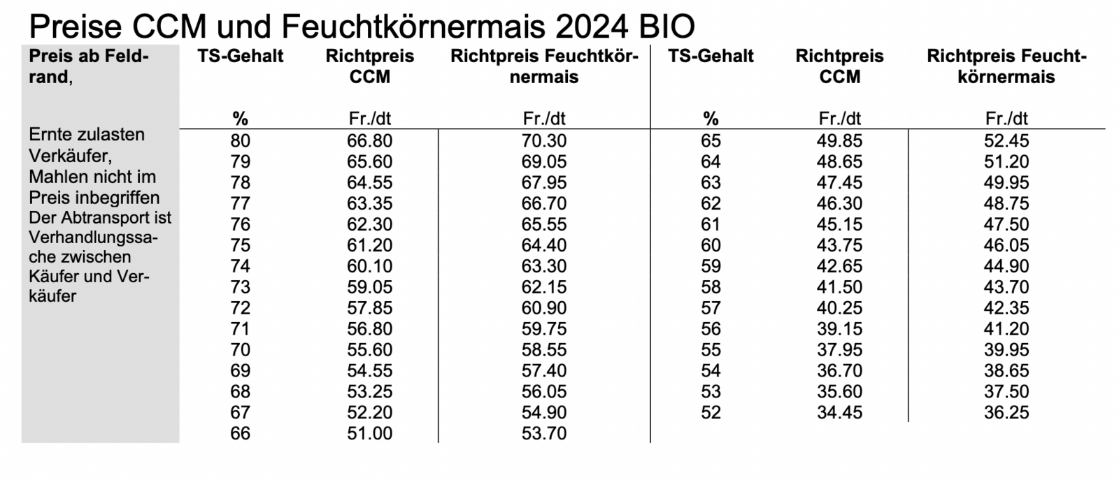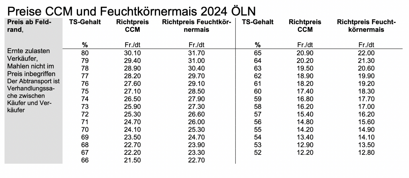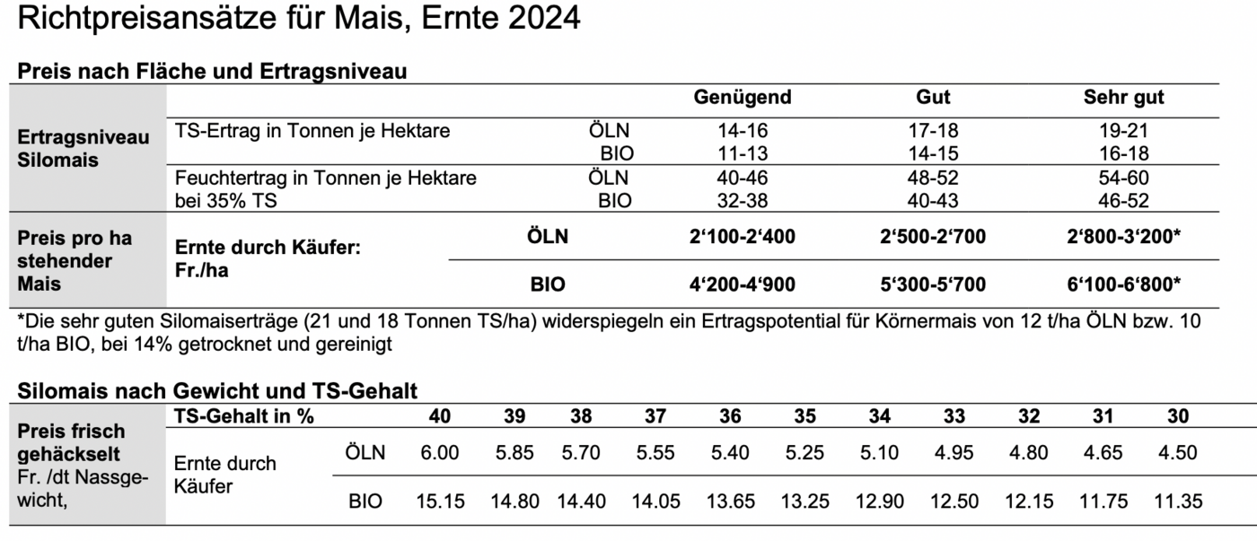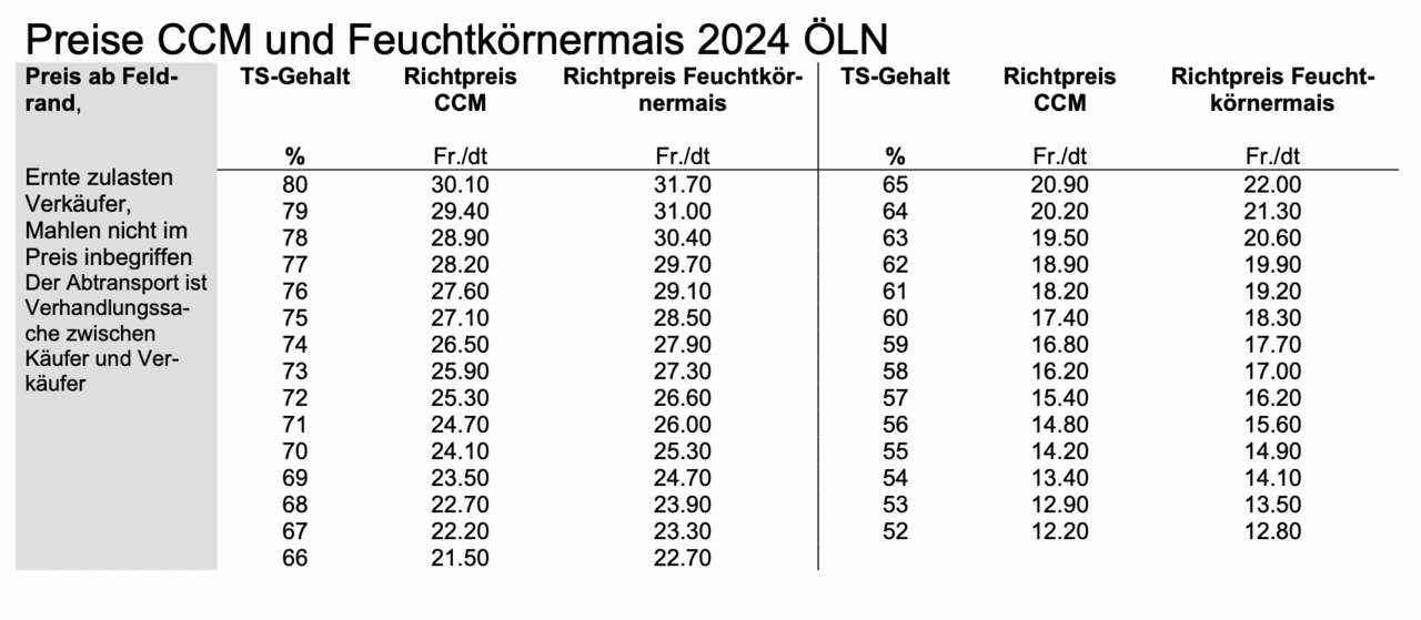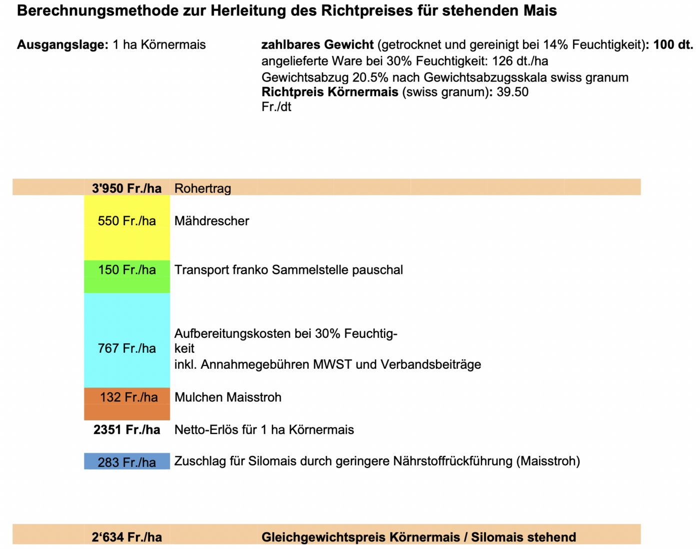 Die Preisberechnungen von Agridea für Silomais, CCM- und Feuchtkörnermais basieren auf dem Körnermaisgrundpreis von Fr. 39.50/dt ÖLN. Dies ist der Richtpreis, den Swiss Granum im Jahr 2022 festlegte. Seither sind die Richtpreisverhandlungen für Futtergetreide in der Branche gescheitert. Den Richtpreis für Bio-Mais hat Bio Suisse bei Fr. 83.00/dt. angesetzt. Er wurde zugunsten der Tierhalter um zwei Franken gesenkt,…