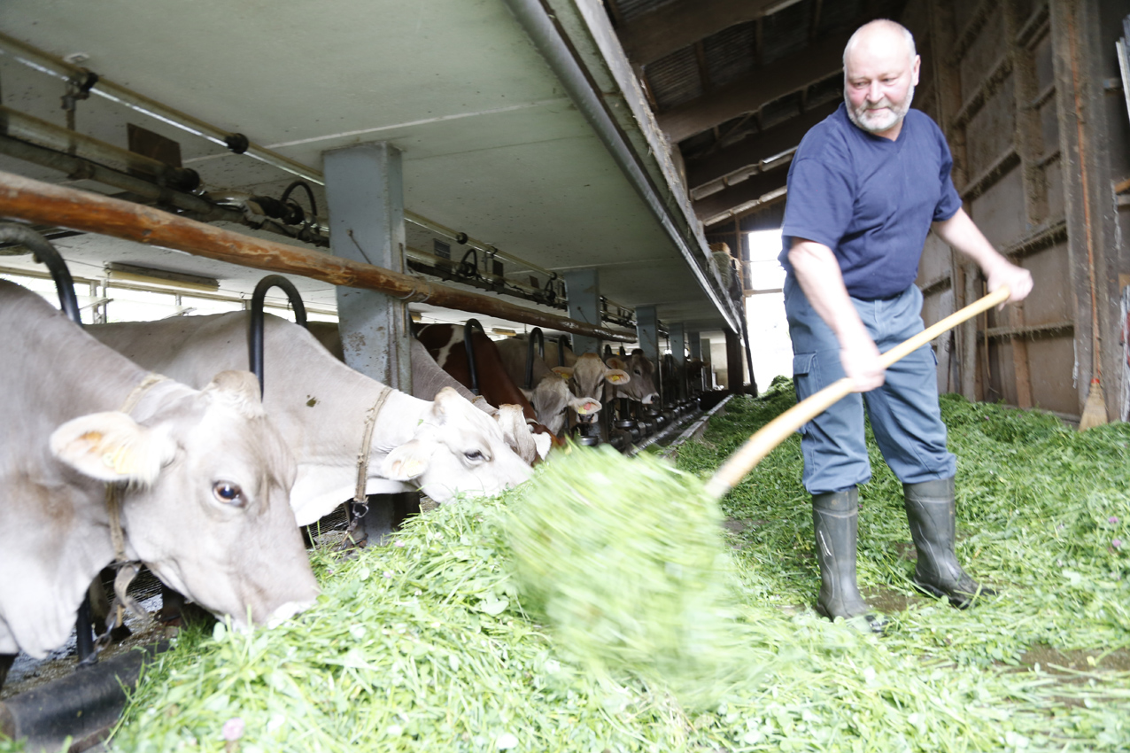 In der Milchwirtschaft sieht Kohler keine Perspektive mehr. "Kann sein, dass der Milchpreis wieder ein paar Rappen steigt, dass er jemals wieder auf ein Niveau von 70 Rappen klettert, halte ich für unrealistisch." Für ihn ist die Zitrone ausgepresst. Möglichkeiten, die Kosten zu senken, um mit einem tieferen Milchpreis zurecht zu kommen, gebe es nicht. Kohler verfüttert fast ausschliesslich hofeigenes Grünfutter, auf den Zukauf von teurem Kraftfutter verzichtet er fast gänzlich. Der Stall ist schon älter und abbezahlt. Die Tiere sind gesund, der Tierarzt ein seltener Gast.