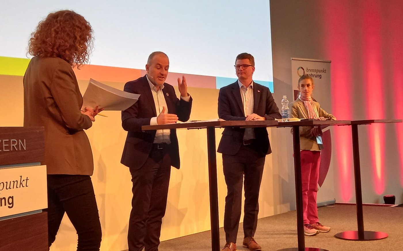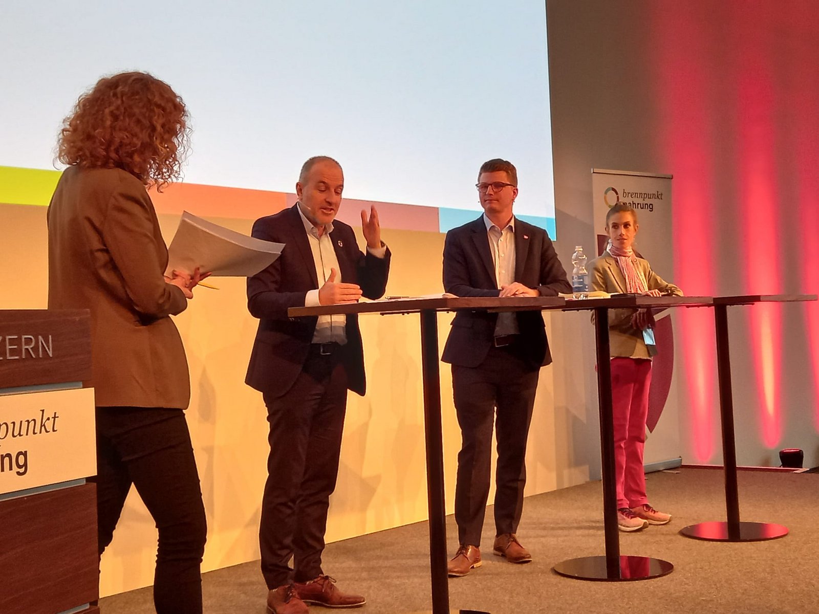 Zum Ende der Konferenz diskutierten die bekannte Veganerin und Nationalrätin Meret Schneider (Grüne, ZH) mit ihren Amtskollegen Roland Fischer (GLP, LU) und Mike Egger (SVP, SG) über die Rolle der Politik, die Land-und Ernährungswirtschaft nachhaltiger zu gestalten.