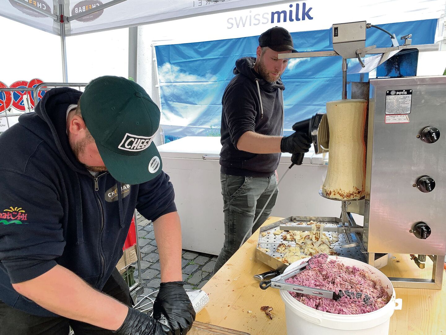 Der «Cheebab» der Wildberg Käse AG aus dem Zürcher Oberland sorgte für Aufsehen und guten Absatz am Cheese-Festival in Luzern. Coleslaw, eine Krautsalatmischung, sowie Zwiebeln und etwas Salat und Sauce werden zusammen mit den wie bei einem Kebab abgeschabten Streifen in einer Teigrolle serviert. Dafür werde ein Typ Grillkäse, ein junger Frischkäse, in Form eines grossen Zylinders gebraten. Handwerk Käse Helen…