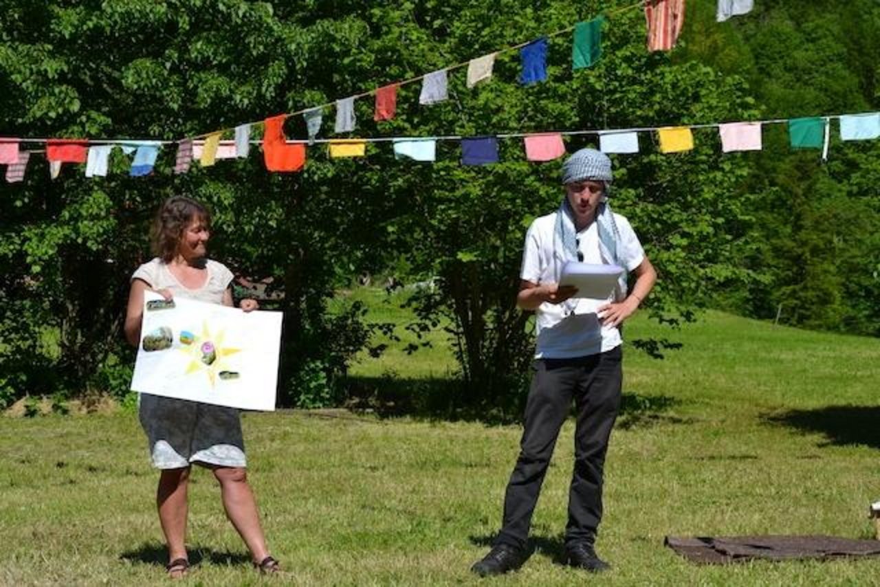 Ydillia, so betitelte eine international-aufgestellte Gruppe ihre Vision. Unter ihnen der englisch-sprachige Ecotown-designer Fergus, der im Ausland bereits derartige Öko-Siedlungen aufgebaut hat und für fünf bis sieben Jahre einen Experimentalraum auf Masesselin für ganzheitliches Zusammenleben schaffen möchte. Die Idee solle hier entwickelt werden, fuhr seine Begleiterin Felicitas fort, man wolle wie indigene Völker mit der Natur in Balance zusammenleben, damit jede Person ihren «Zweck» oder ihren Lebenssinn erfüllen könne. Die Sprechenden repräsentierten eine Gruppe von 18 Leuten, verteilt über die Schweiz, Kalifornien und Südafrika, die Feste als transformative Werkzeuge einsetzen will, um sozialen Zusammenhalt und gesellschaftliche Transformation zu ermöglichen. Das Kapital für dieses Projekt komme aus Erspartem und aus dem Freundeskreis. Das Ganze solle aber beweglich sein, jetzt brauche es vor allem mal einen Platz, um die Idee «zu säen». Auch diese Gruppe hat verschiedenste Mitglieder, aus der Zero-Waste-Bewegung, Permakultur, Demeter und weitere, man wolle aber gerne weitere Leute «aufpolieren».