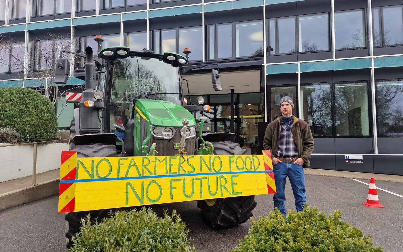 Mit diversen Aktionen haben Landwirte in den letzten Tagen und Wochen Zeichen gesetzt und unter anderem faire Produzentenpreise gefordert. Eine kleine Gruppe wird auch heute vor den Toren der BOM in Bern erwartet. Bereits am Morgen vor Ort ist Roman Hodel aus Dagmersellen LU. Für die 60 km habe er 1,5 Stunden gebraucht, erklärt er. Die Polizei sei informiert und froh, dass nicht zu viele Traktoren auffahren. «Man wird schnell einmal nervös, wenn Traktoren in der Stadt unterwegs sind», sagt Hodel.