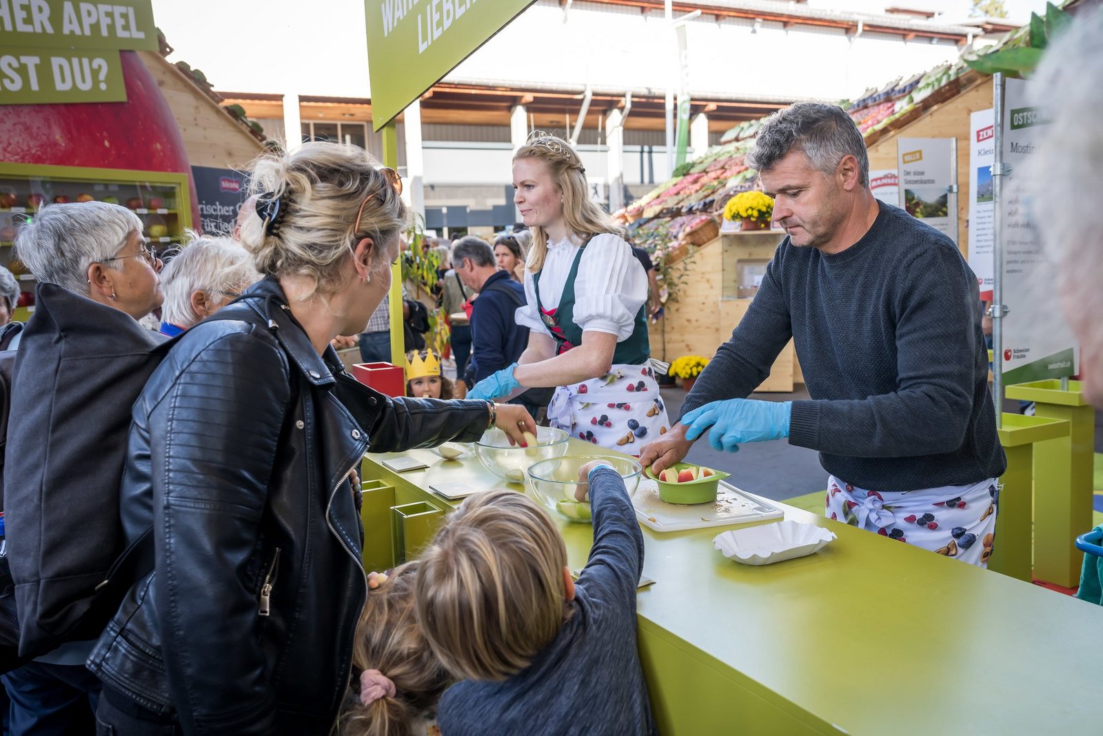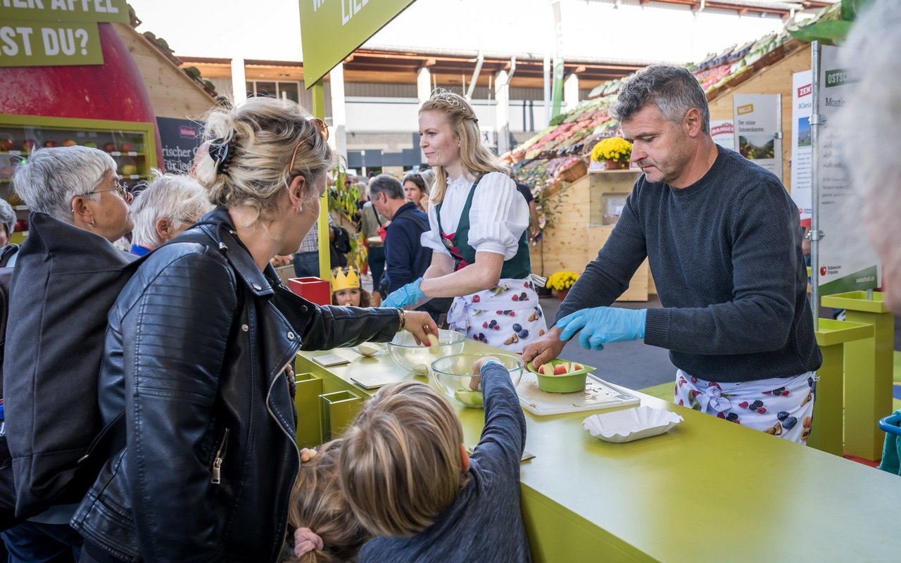 Verspiesen wurden gemäss Mitteilung 2,5 Tonnen Äpfel, mundgerecht geschnitten in etwa 150'000 Schnitze. Am Degustationsstand habe Hochbetrieb geherrscht und es wurde eifrig für den jeweils ganz individuellen Lieblingsapfel abgestimmt. Das Resultat: An der Spitze stehen Diwa und Kanzi, gefolgt von Gala, Greenstar und Cox Orange.
