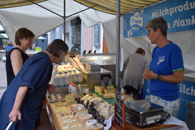 Wer am diesem Samstagmorgen auf dem Churer Wochenmarkt unterwegs ist, braucht wetterfeste Kleidung. Kurz nach acht Uhr setzt Regen ein, der erst am Nachmittag nachlässt. Gut besucht sind die Marktstände aber allemal und es herrscht eine gemütliche Atmosphäre. Wer das Markttreiben etwas genauer beobachtet, stellt fest, man kennt sich hier. Viele Passanten wissen genau, an welchem Stand sie ihr Gemüse, wo das Brot und…