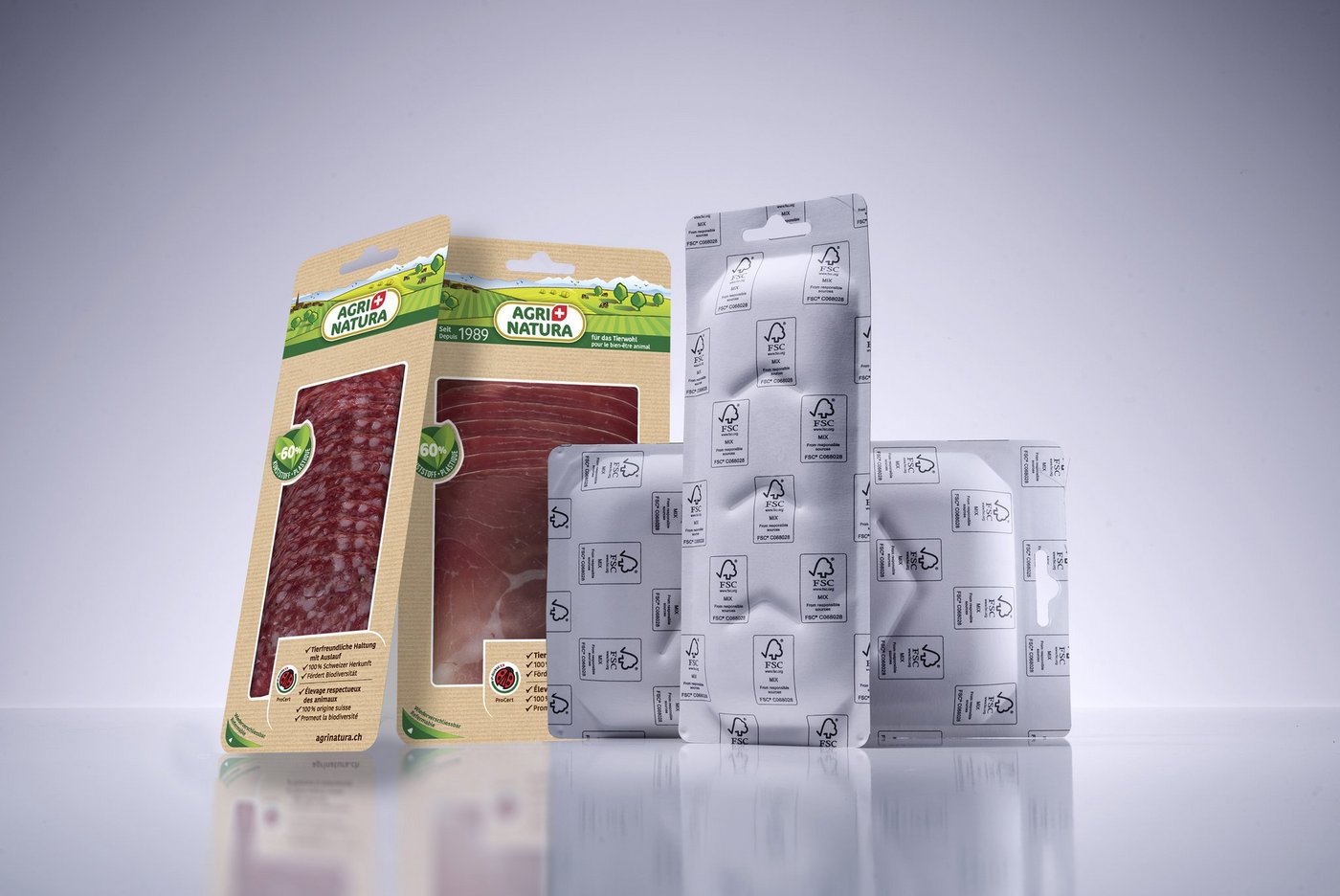 Die Ernst Sutter AG entwickelte in Zusammenarbeit mit Volg die ökologische Agri-Natura-Verpackung. Das Ziel sei dabei gewesen, nachhaltig produziertes Fleisch in umweltfreundlicheren Verpackungen zu verkaufen. Da die Verpackungen grösstenteils aus FSC-Papier bestehen, könne der Kunststoffverbrauch um über 40 Tonnen reduziert werden, so die SFF.