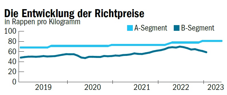 «Internationale Preisentwicklung setzt dem Schweizer Milchpreis zu», lautet die Schlagzeile auf dem «Info» der Zentralschweizer Milchproduzenten (ZMP) vom Januar. Ungeachtet des erhöhten Richtpreises für die A-Milch nehmen die ZMP deshalb per Februar eine Senkung des Basispreises um 2 Rp. auf 65 Rp./kg vor. Gar um 4 Rp./kg sinkt der Preis für die Milch ausserhalb der Monatsvertragsmenge. Dieser beträgt neu 55 Rp./kg.…