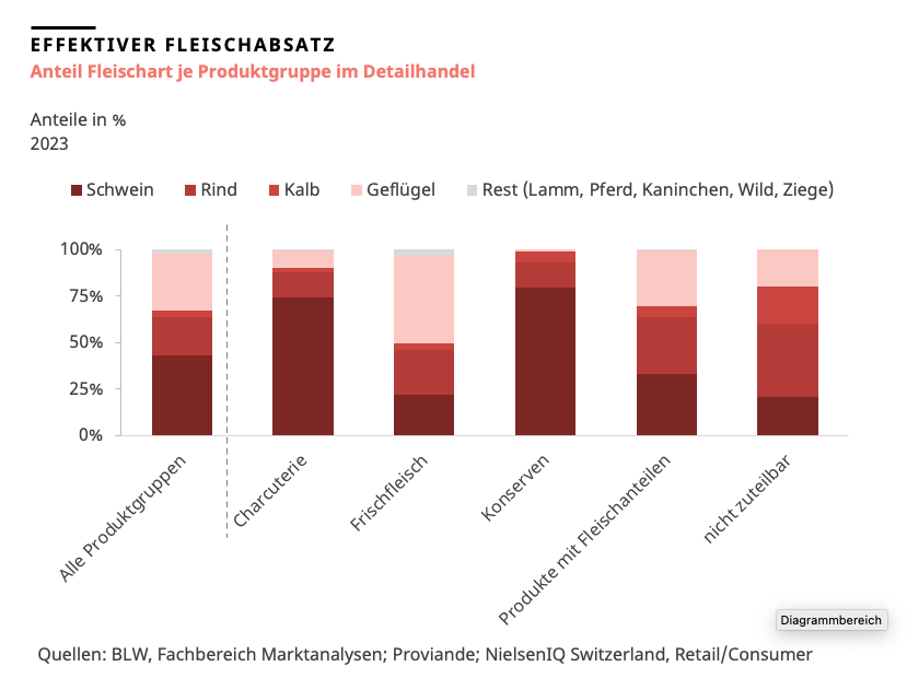 Im vergangenen Jahr wurden in der Schweiz insgesamt 436 400 Tonnen Fleisch konsumiert. Der Fleischabsatz im Detailhandel macht dabei gut die Hälfte aus und blieb im Vergleich zum Vorjahr stabil. Dies ist dem neusten Fleischmarktbericht des Bundes zu entnehmen. Dabei sind 55,5 % des im Detailhandel verkauften Fleisches frisch und 39 % werden der Charcuterie zugerechnet. Produkte mit Fleischanteil wie etwa Pizza und…