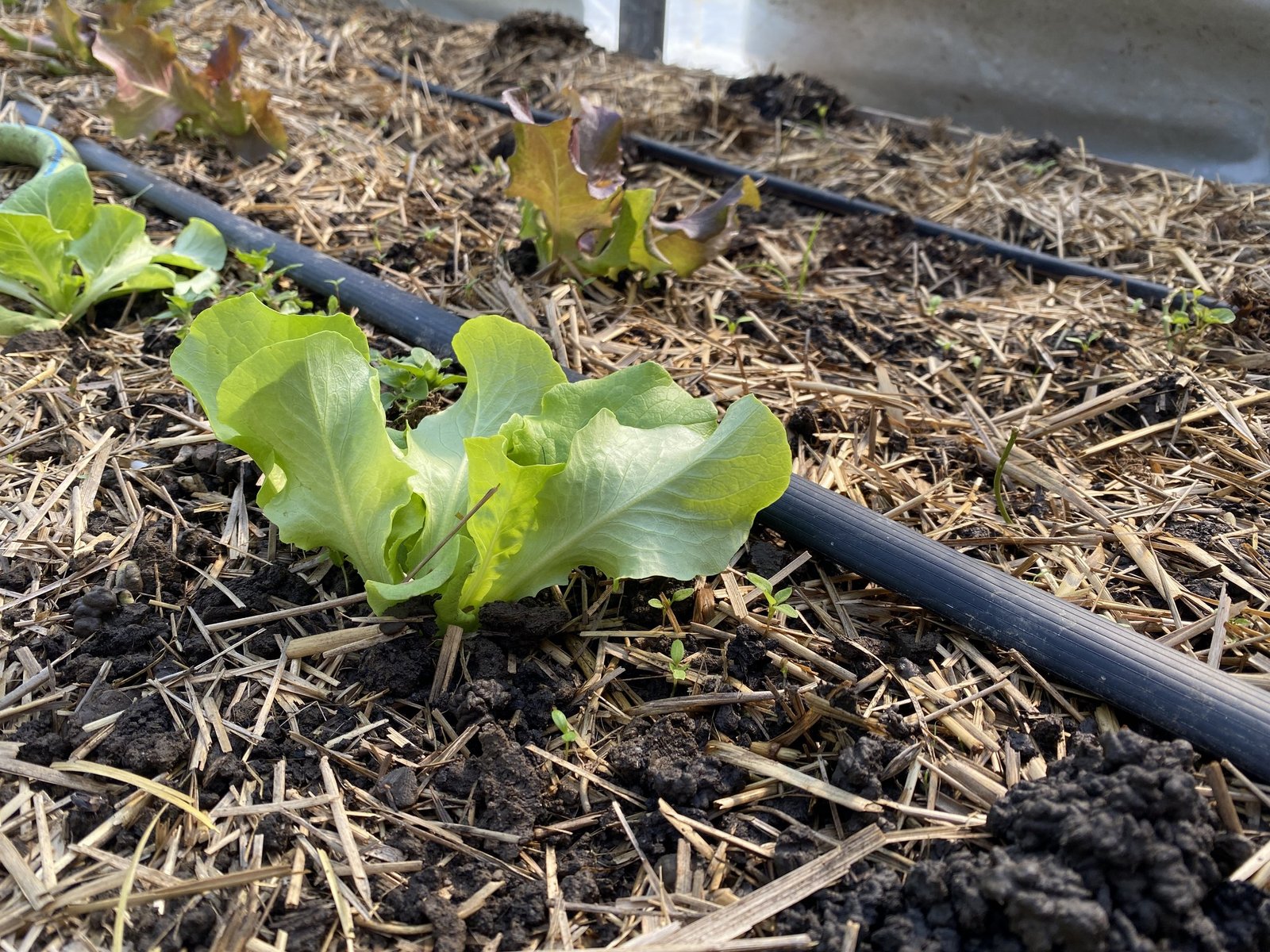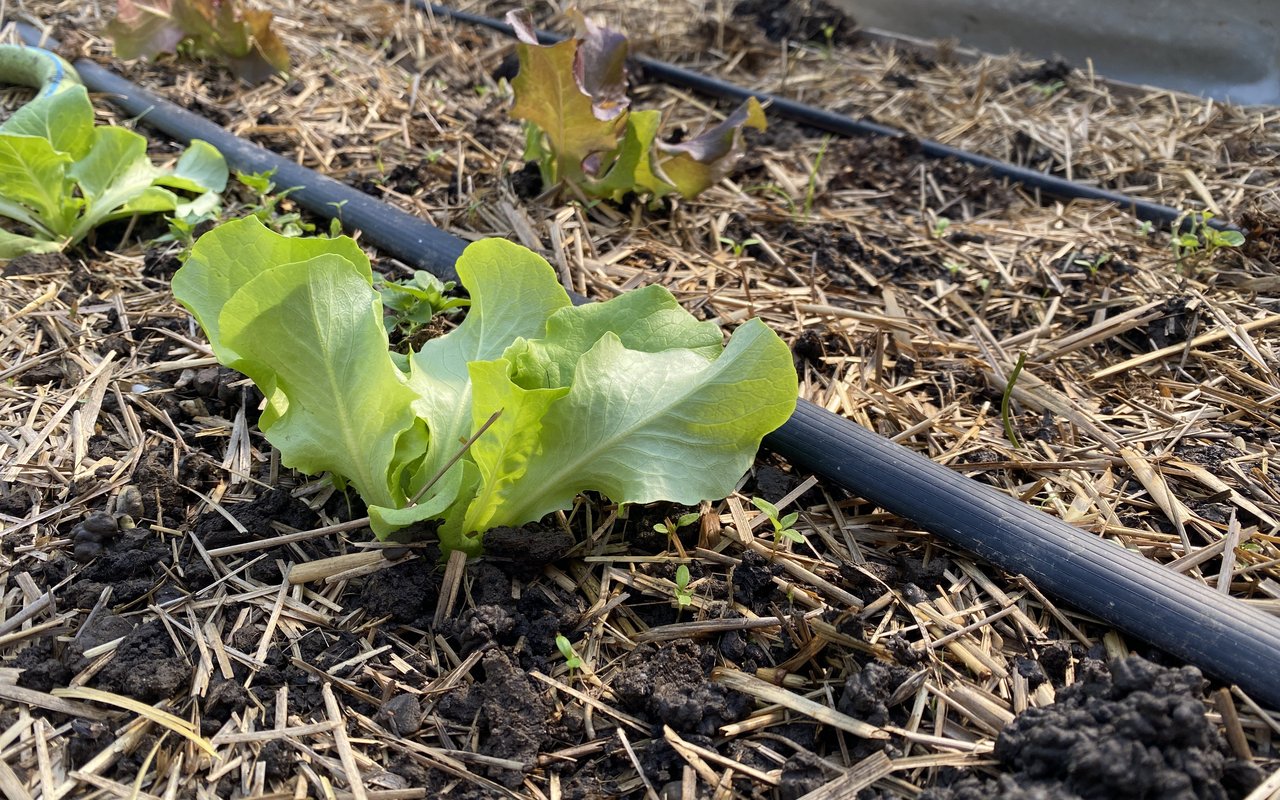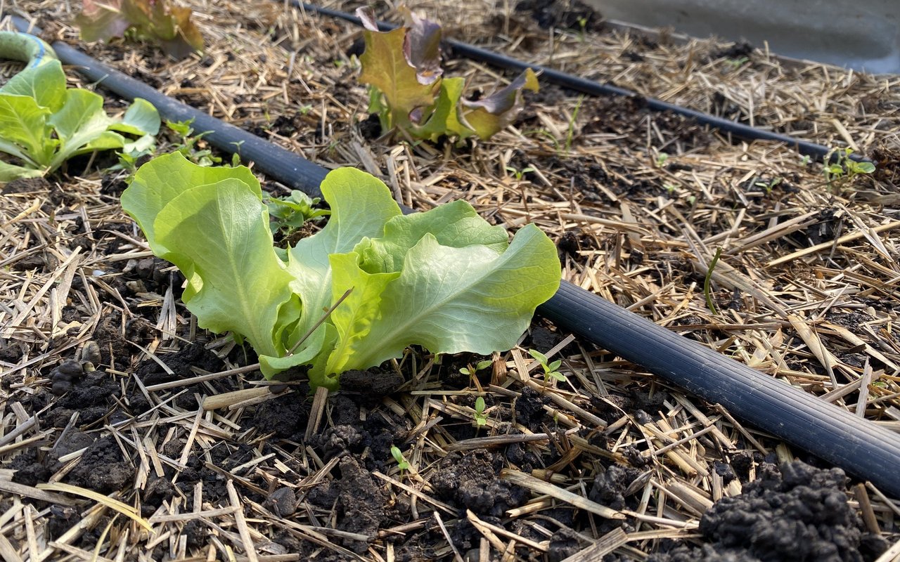 Im Tunnel wächst das Gemüse mit Mist als Dünger und einer dicken Mulchschicht aus Stroh, draussen bedeckt Ökoheu die Beete. Der Boden wird nicht bearbeitet, Humusaufbau ist das Ziel. «Im Freiland zersetzt sich der Mulch viel schneller als drinnen mit der Tröpfchenbewässerung. Nach etwa drei Sätzen Salat mulchen wir von Hand nach.» Noch erfolgt das Setzen mit einem Akkubohrer, der ein Loch in Mulch und Boden bohrt. Künftig wollen die Luzerner eine selbst konstruierte Maschine dafür einsetzten. «Es ist uns wichtig, dass wir diese Handarbeit durch effiziente Maschinen ersetzen kann», sagt Dario Heller. Das Ziel ist eine weitere Steigerung der Arbeitseffizienz.