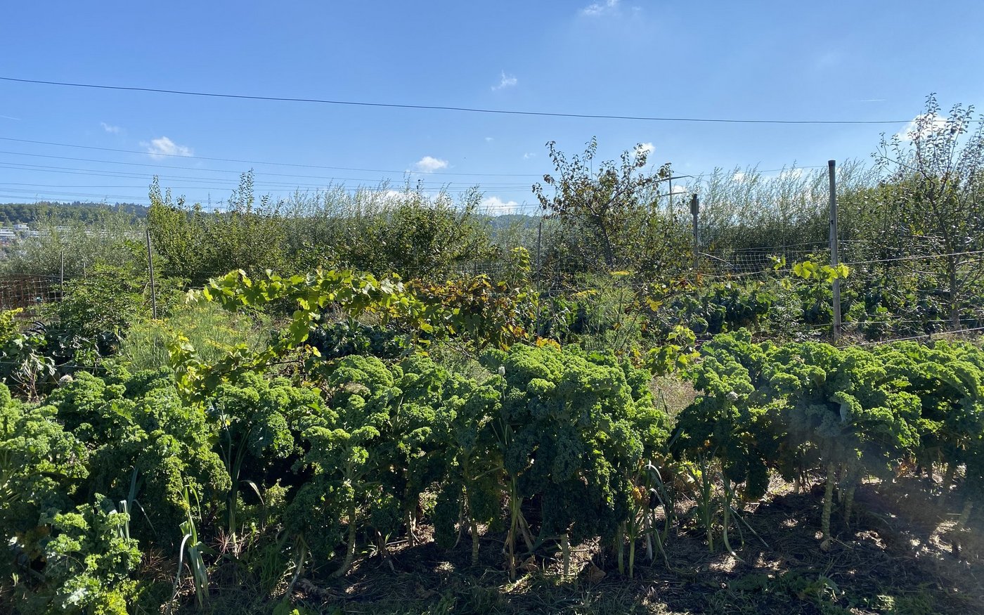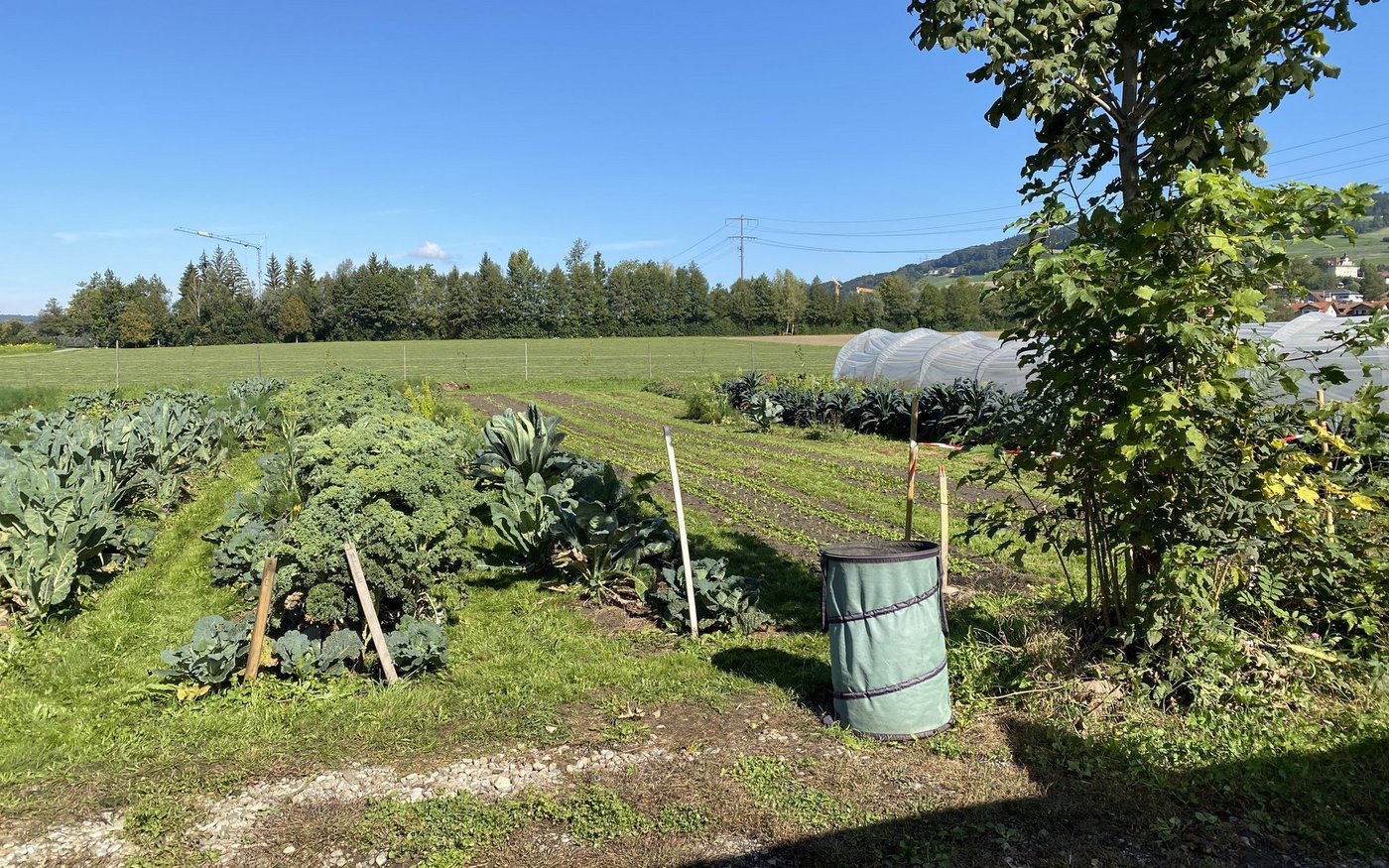 Mit dem Flächen-Abo-Konzept trägt die Kundschaft auch einen Teil des Anbaurisikos. «Dank der die grossen Vielfalt auf der Fläche werden aber immer einige Gemüsearten die verschiedenen Wetterbedingungen überstehen und gedeihen», gibt Dario Heller zu bedenken. Um dem grössten Schädlingsdruck im Sommer auszuweichen, nutzen die Luzerner die Flexibilität ihres Direktvermarktungssystems aus und bauen z. B. Blumenkohl bereits früh im Jahr an, um diese Gemüse dann im Sommer auszulassen. Dies mit der Aufforderung an die Kundschaft, den Blumenkohl einzufrieren oder einzumachen, um trotzdem in den warmen Monaten davon profitieren zu können. Daneben gibt es Obst und Beeren von den Bäumen und Sträuchern, die Hellers inspiriert von der Permakultur zwischen die Beete gepflanzt haben. «Dafür garantieren wir aber nicht», so Dario Heller, «das setzt uns nicht unter Druck, gegen Krankheiten oder Schädlinge zu spritzen.»