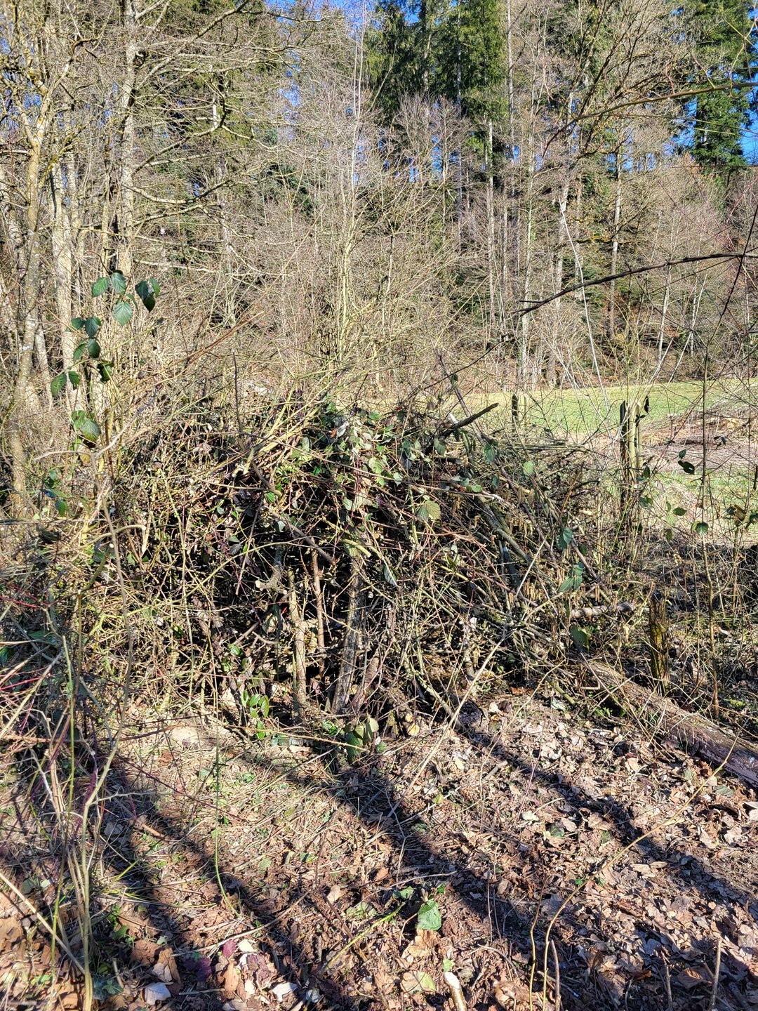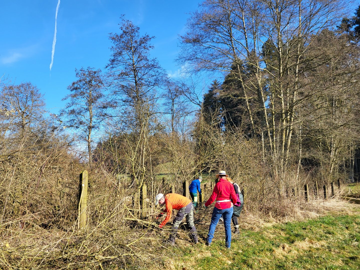 Das Hochgefühl, etwas gemeinsam für Wildtiere zu erschaffen, wurde erst kurzfristig unterbrochen, als der erste Nachbar-Landwirt vorbeischaute. Die wilde Hecke habe allmählich begonnen, in seine Parzelle hineinzuwachsen und er sei froh, dass diese nun zurückgeschnitten werde. Auch die Nachbarin der anderen Seite kam im Verlaufe des Nachmittags für ein ähnliches Statement vorbei. Einsatzleiterin Ursina El Sammra zeigte sich sehr verständnisvoll und betonte, sie dürfen sich jederzeit bei der Geschäftsstelle von Pro Natura Aargau melden, wenn etwas ist.
