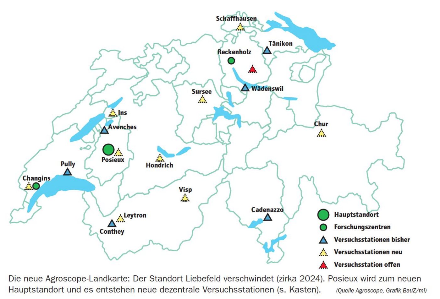 Die Themen an den neuen Standorten sind publik. Wir können es uns nicht mehr leisten, standortunabhängige Tätigkeiten wie etwa Laboranalysen mit teuren Spezialgeräten an mehreren Orten gleichzeitig durchzuführen. An den drei Hauptstandorten soll eine universitäre Atmosphäre herrschen. Da ist die Forschung grundlagenorientiert und findet v.a. im Labor oder im Büro statt, Synergien werden optimal genutzt. Mit den damit erreichten Effizienzgewinnen können wir zusätzliche Forscherinnen und Forscher anstellen, neue Forschungsthemen bearbeiten und den Austausch mit der Praxis über Versuchsstationen verstärken. Das generiert Mehrwert.