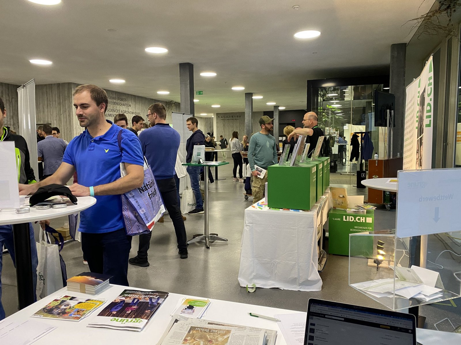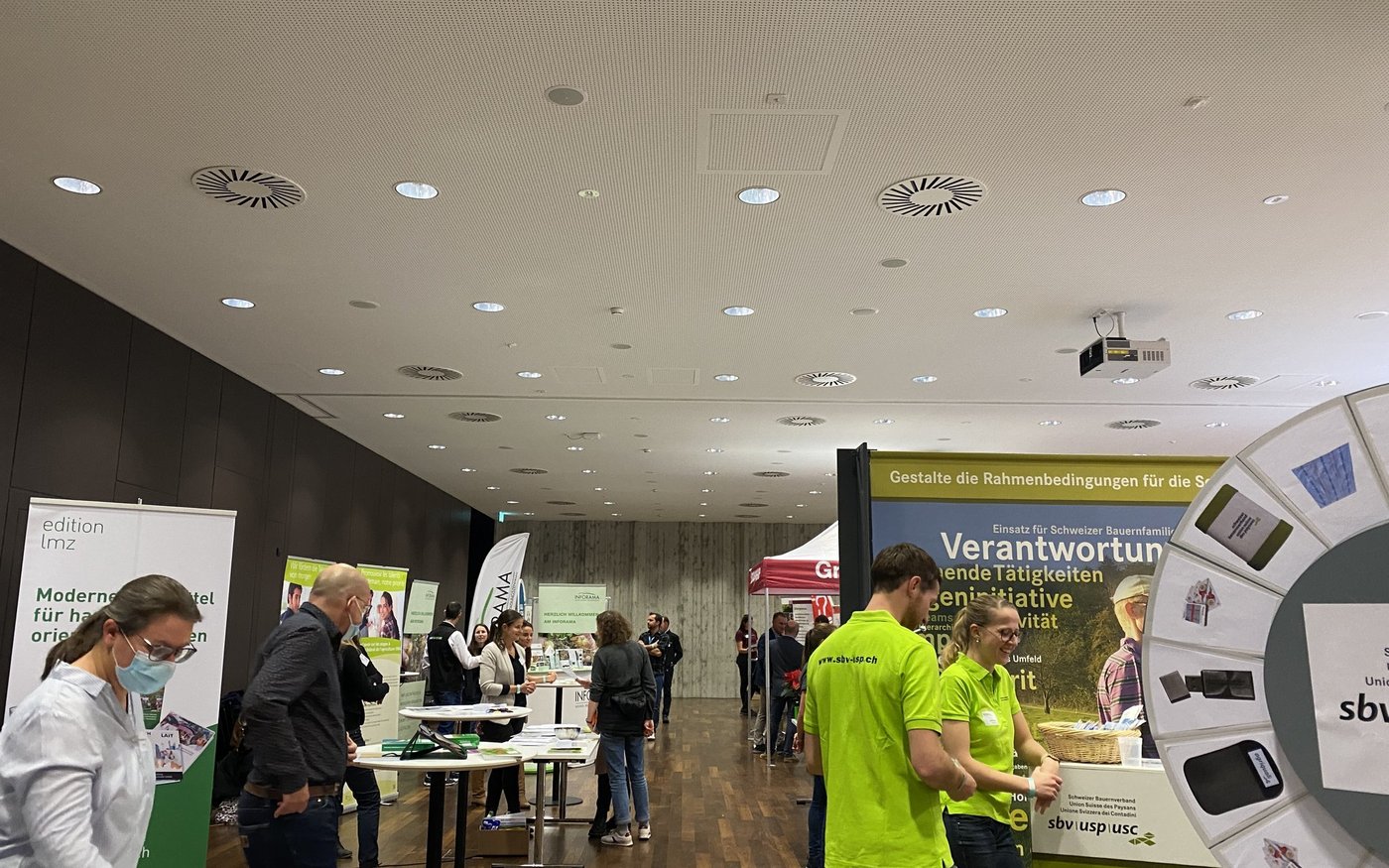 [IMG 2]Heute sind wirklich alle vor Ort. Das ist ein grosser Vorteil und ein Privileg für uns Studierende. So muss man nicht stundenlang Online-Jobportale durchforsten, sondern kann mit den Anwesenden sprechen und direkte Fragen stellen. Eine klare Vorstellung davon, wo ich nach Abschluss des Agronomiestudiums an der Fachhochschule lande, habe ich nicht. Da ich als Vertiefung Nutztierwissenschaften gewählt habe, würde ich wahrscheinlich auch in diesem Bereich arbeiten wollen. Mal sehen.