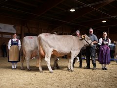 Unter den erstlaktierenden Original Braunen konnte sich Frank OB Durbo Ora bis an die Spitze kämpfen und bestach mit ihrer Komplettheit und ihrem ausgeprägten Milch- sowie Fleischtyp. Die Kuh, aus dem Stall von Alfred und Judith Anderegg aus Meiringen, wurde Drittplatzierte in der Schöneuterwahl der Erstlaktierenden und später gar zur Junior-Miss ernannt.
