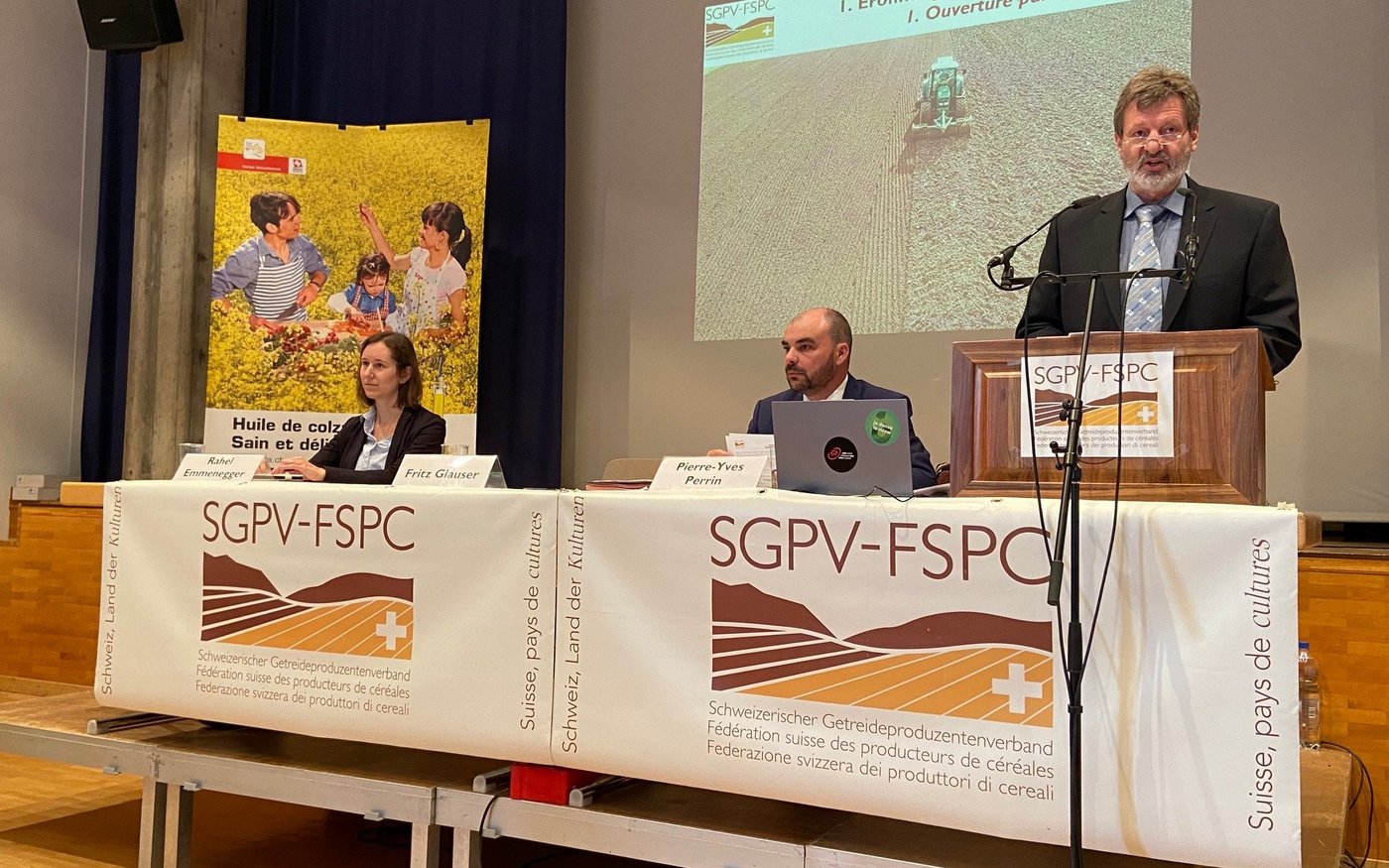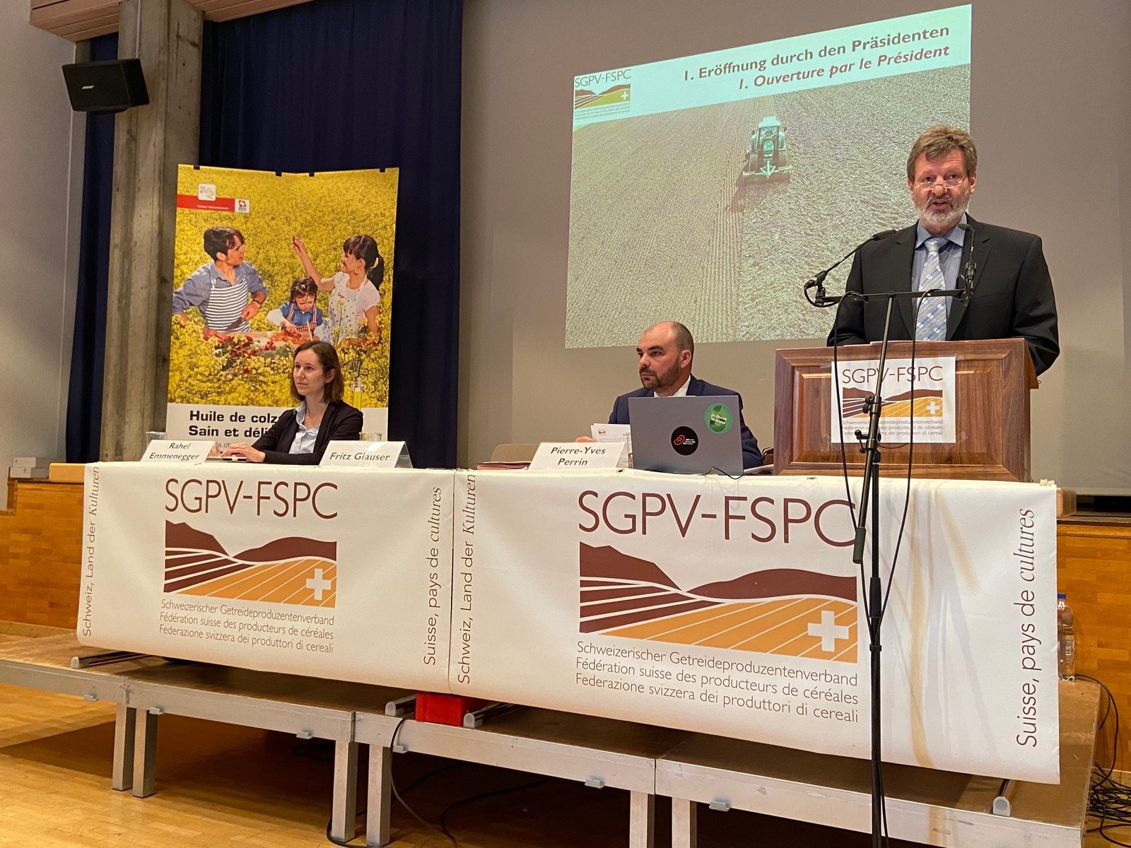 «Was für Turbulenzen in den letzten 12 Monaten!», sagte Fritz Glauser, Präsident des Schweizerischen Getreideproduzentenverbands (SGPV) zum Auftakt der Delegiertenversammlung im freiburgischen Kerzers. Schon in den Covid-Zeiten habe der Welthandel nicht mehr richtig funktioniert. Der Ukraine-Krieg habe die Probleme der steigenden Produktionskosten, der Logistik und der Energieversorgung nun noch verschärft.