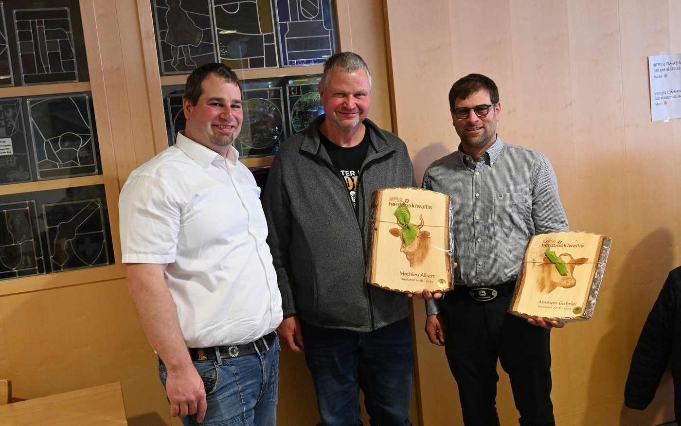 Mit Stolz konnten die Walliser Züchter diverse Ehrungen vergeben. Bei Swissherdbook Wallis ist es Tradition, dass austretende Vorstandsmitglieder erst an der Versammlung im Nachfolgejahr geehrt werden. Daher konnten Albert Mathieu aus Albinen sowie Gabriel Ammann aus Turtmann für ihre Amtszeit von 2018 bis 2025 ein Geschenk und Dank entgegennehmen. Beide hatten neue Ämter angenommen und daher dasjenige bei Swissherdbook Wallis abgegeben.