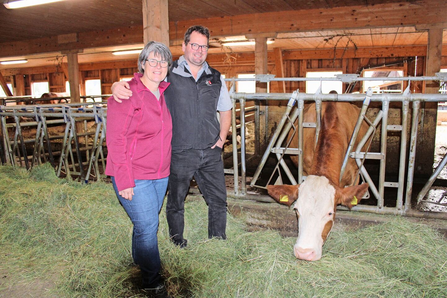 Das altehrwürdige Bauernhaus und die grosszügige Scheune von Peter und Sabine Küng beeindruckten beim Betriebsrundgang ebenso wie die harmonische Simmentaler-Herde aus eigener Zucht. Im Jahr 2000 begannen die beiden mit der Umstellung. «Seit 2010 setzen wir ganz auf die Karte Mutterkuhhaltung», so der Landwirt. Zum Hof gehören rund 20 ha im Talbetrieb sowie die 65 Normalstösse auf den Sömmerungen.