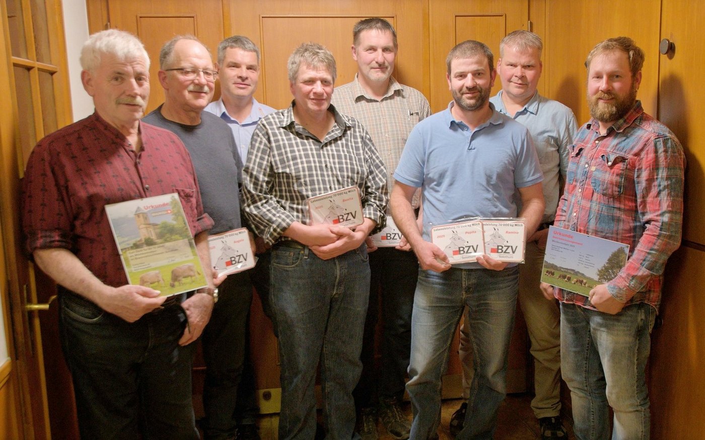 Sieben Züchter konnten für ihre Kühe mit einer Lebensleistung von 70 000 kg Milch mit einer Plakette geehrt werden. Geehrt wurden auch die zwei Milchkontrolleure Franz Flück für zehn und Jürg Mosimann für zwanzig Jahre Milchkontrolleurtätigkeit.
