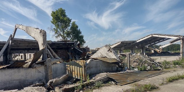 Gewächshäuser, eine Werkstatt, eine Garage für Maschinen, Häuser, Tomaten- und Kartoffelerntemaschinen, Traktoren und Pflanzkübel wurden durch Bombenangriffe und Beschuss zerstört. Die Russen beschädigten absichtlich eine 700 Meter lange Wasserleitung zur Bewässerung von Gemüse, indem sie mit Panzern darüberfuhren. Glücklicherweise blieben die Gewächshäuser und die Konservenfabrik fast unversehrt. Aber jetzt ist die Konservenfabrik nicht mehr in Betrieb, weil wir keine Rohstoffe für die Verarbeitung haben. Die Russen nahmen an Plünderungen teil. Sie stahlen beispielsweise Bewässerungspumpen und durchtrennten Kupferkabel.