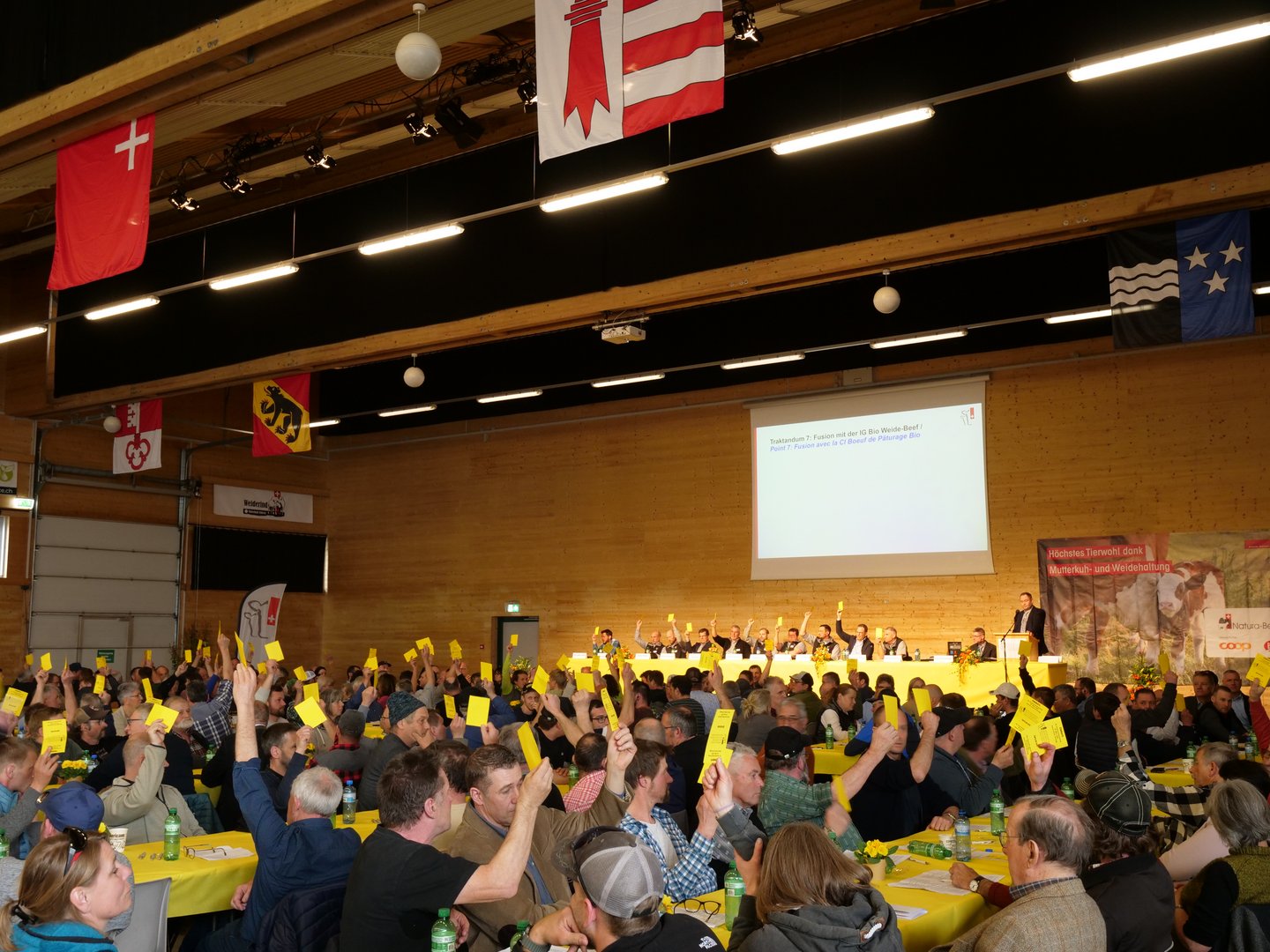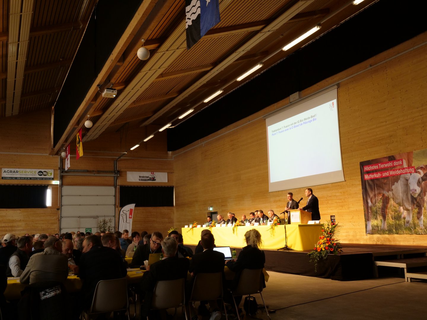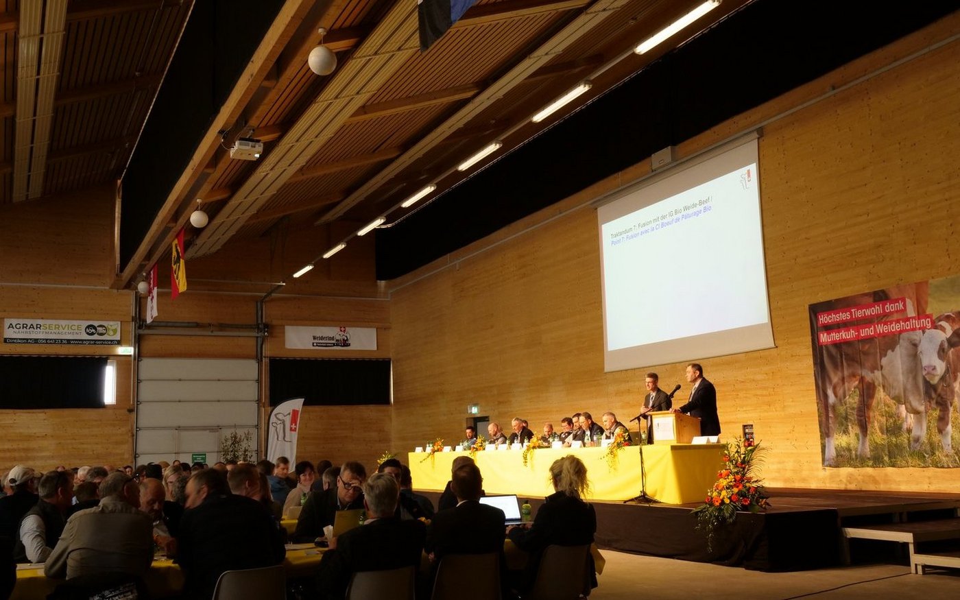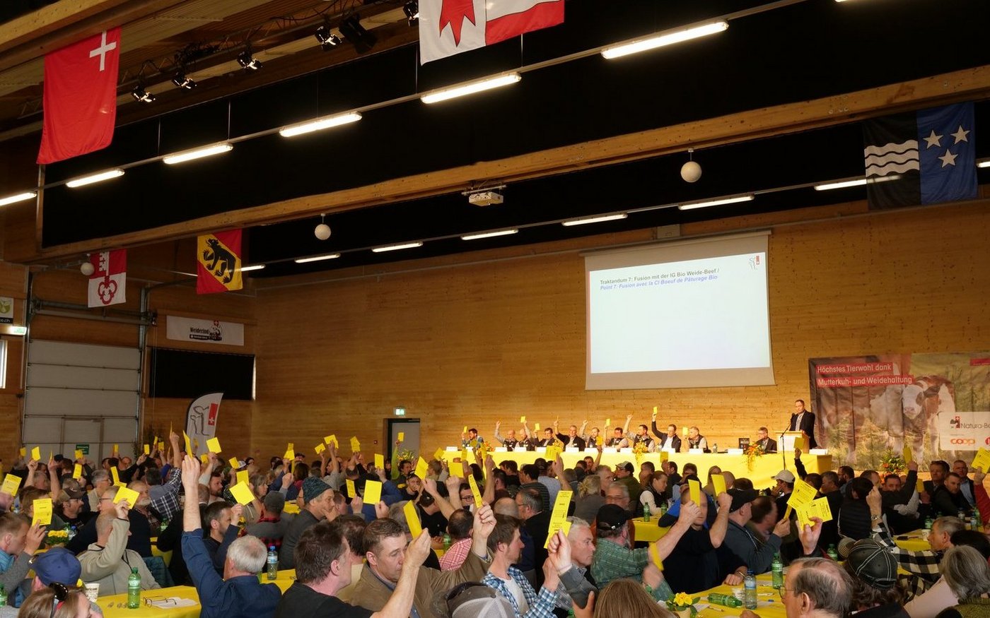 In einer sehr vollen Vianco-Arena in Brunegg AG trafen sich an diesem stürmischen Frühlingstag die Mitglieder von Mutterkuh Schweiz. Jeder einzelne Stuhl war besetzt, am Rand der Halle reihten sich die Vorstandsmitglieder. Das Traktandum, das beschäftigte: Die Fusion des fast 50-jährigen Vereins Mutterkuh Schweiz mit der Interessengemeinschaft IG Bio Weide-Beef. An der 49. Versammlung lehnten die Mitglieder die…