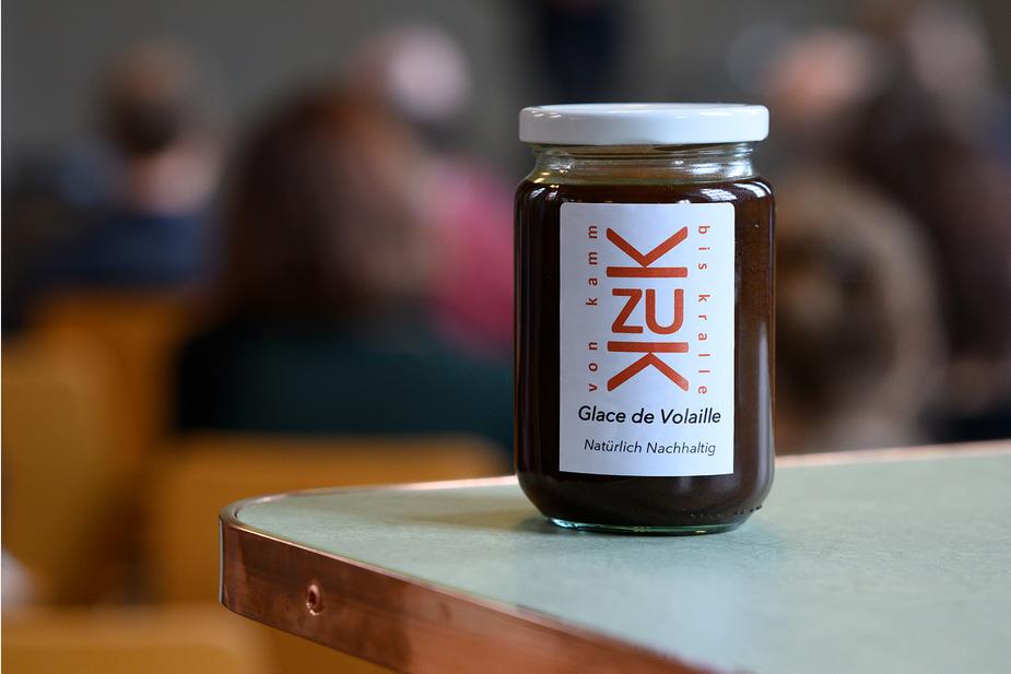 Glace de Volaille: Urs Wenger aus Gümligen BE, Produktentwickler bei der Haco AG entwickelte einen frischen, flüssigen Fonds aus Pouletflügelspitzen und Pouletknochenschrot. Die Glace kann als Basis für Saucen eingesetzt werden und kam auf den zweiten Platz.