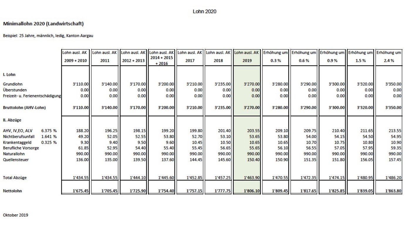Das schreibt der Schweizer Bauernverband in den «SBV-News» vom Montag. Gründe für die Anpassung seien die Teuerung und die «schwierige Rekrutierungssituation», heisst es. Der Minimallohn ist Bestandteil der offiziellen Lohnrichtlinie und wird von einer Arbeitsgruppe mit Vertreten des Bundes, der Kantone, landw. Organisationen und der Arbeitsgemeinschaft der Berufsverbände der landwirtschaftlichen Angestellten…