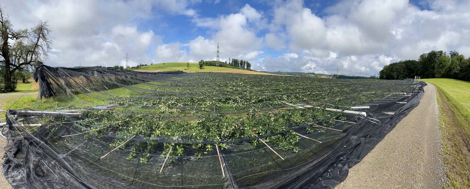 2021 war ein Jahr der Wetterextreme: Im Januar sorgten heftige Schneefälle für Schneedruckschäden. Im Sommer wüteten Sturmwinde, Starkregen und Hagel. Allein die Mobiliar verzeichnete im Juni und Juli Schäden in Höhe von 320 Millionen Franken. Besonders eindrücklich: Der Hagelzug vom 28. Juni geht mit einer Schadenhöhe von 110 Millionen Franken als bisher grösstes Hagelereignis in die Geschichte der Mobiliar ein. Die teils tennisballgrossen Eiskörner verwüsteten nebst Fahrzeugen und Gebäuden auch landwirtschaftliche Kulturen. Und sie beschädigten Schutzeinrichtungen wie Plastiktunnel, Bogenhallen und Witterungsschutzanlagen auf Obst- und Beerenkulturen.