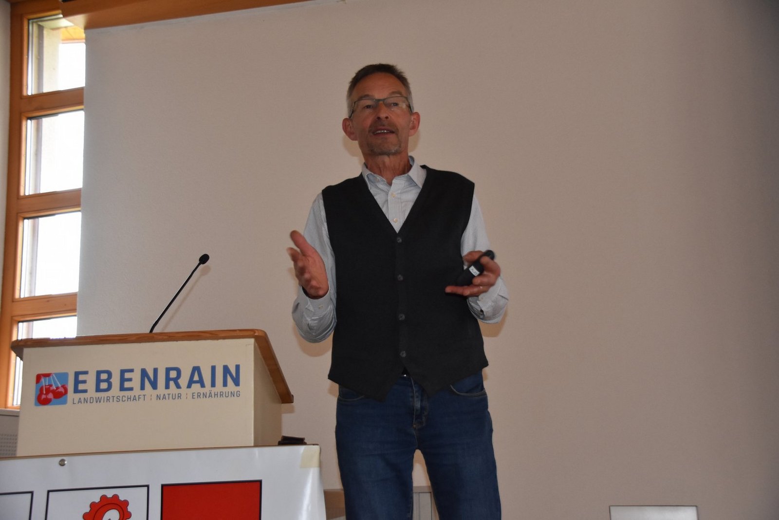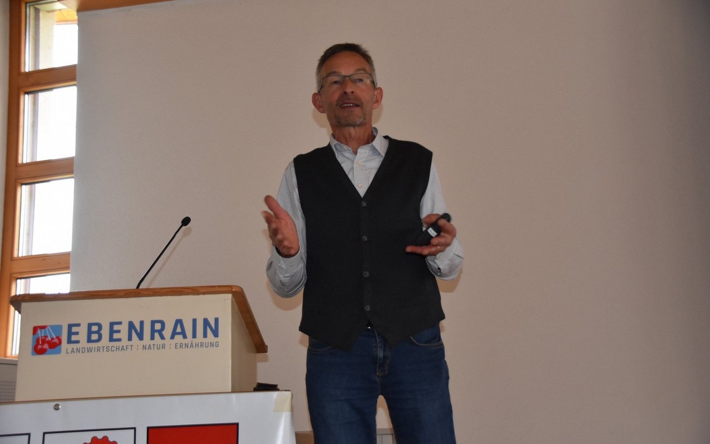 «Auf rund 4451 ha Landwirtschaftlicher Nutzfläche wird in den Kantonen beider Basel Bio-Landbau betrieben», sagte Ebenrain-Leiter Christoph Böbner. Der Anteil an Bio-Betrieben liege mit 21,8 % leicht über dem Schweizer Durchschnitt. Der Ebenrain will im dritten Lehrjahr Bio-Pflanzenbau als Vertiefung anbieten. «Die Bio-Tierhaltung wird in den herkömmlichen Unterricht integriert», sagte Böbner.