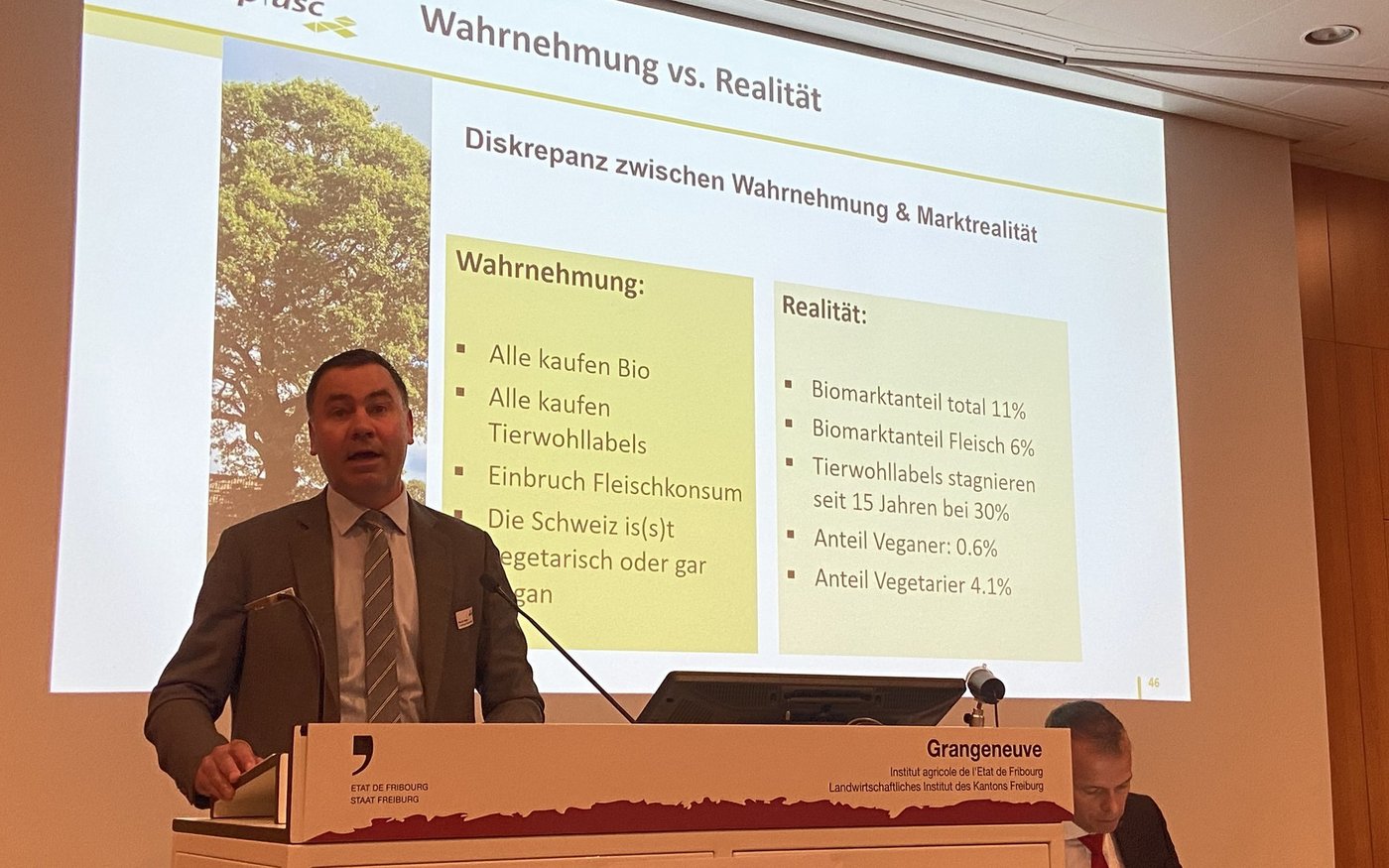 Die öffentliche Wahrnehmung - alles will Bio und vegan - und die Realität stimmten hier oft nicht ganz überein. Der Fleischkonsum sei praktisch unverändert und der Bioanteil verharre auf tiefem Niveau. «Wir sind alle gut beraten, uns an der Realität zu orientieren», sagte er.