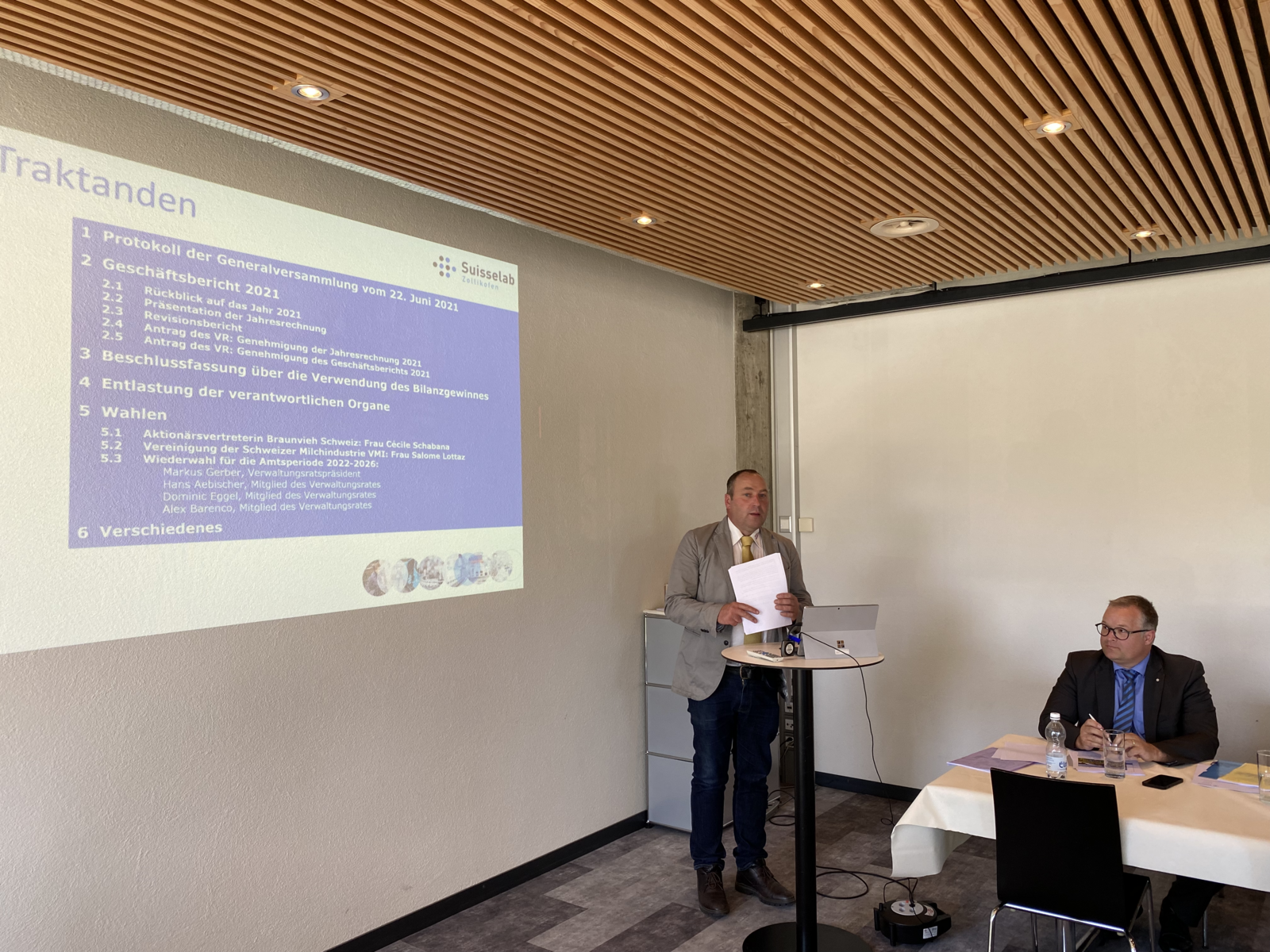 «Ich geniesse auch bei diesem heissen Wetter gerne ein Glas kalte Milch», sagte VR-Präsident Markus Gerber an der Generalversammlung des Kompetenzzentrums Suisselab am Dienstag, 14. Juni 2022. Trotz des heissen Wetters kommt man bei der Suisselab nicht ins Schwitzen, denn das Unternehmen blickt trotz eines ereignisreichen und herausfordernden Jahres gut aufgestellt in die Zukunft.