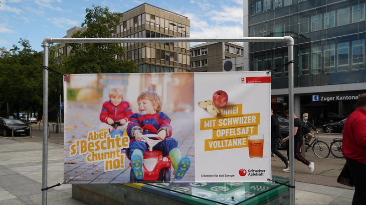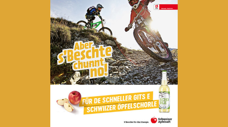 Mit den einheimischen Kirschen tauchen auch die ersten Plakate der neuen Werbekampagne des SOV auf. Der Spruch «Aber s’Beschte chunnt no!» soll laut Mitteilung zeigen, dass sich das Warten auf Schweizer Früchte und Apfelsaft lohnt. Denn diese Produkte seien natürlich, saisonal, gesund und gut, schützen die Umwelt mit kurzen Transportwegen, schaffen Arbeitsplätze, fördern Biodiversität und erhalten Traditionen, so der SOV.