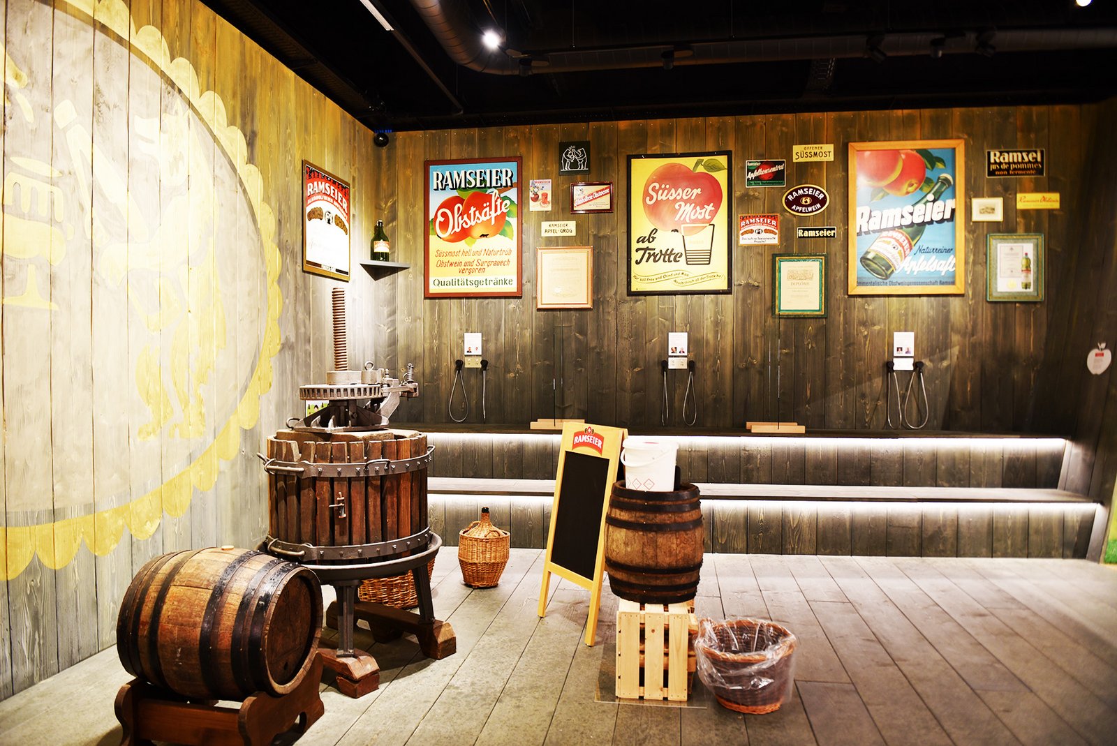 Neben Wissen über Tradition, Innovation und Handwerkskunst kommt nach dem Rundgang im kleinen Bistro mit einem Angebot von Snacks und Getränken auch der Genuss nicht zu kurz. Für Saft-Fans gibt es auch Ramseier-Fanartikel im Shop.