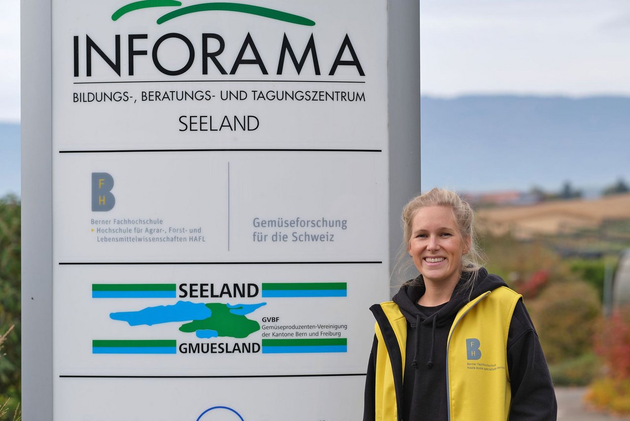 Camille Minguely, Assistentin in der Forschungsgruppe Agrar- und Verfahrenstechnik, forscht in Ins zu ressourcenschonenden Anbauverfahren für den Gemüsebau. Ihre Tätigkeiten sind Teil eines neuen HAFL-Forschungsprogramms, das von der Wyss Academy for Nature mitfinanziert wird. Geleitet wird das Programm von Bernhard Streit und Andreas Keiser. Die Ziele des Projektes sind:
