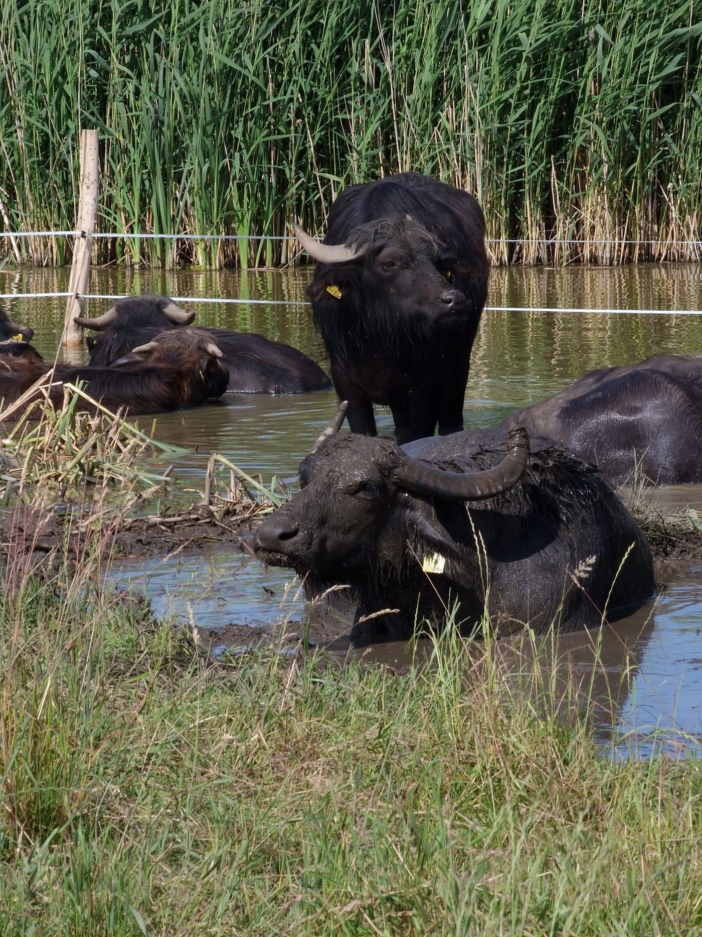 [IMG 4]Tatsächlich fühlten sich die Wasserbüffel am Lobsigensee aber sofort pudelwohl. Die Tiere seien sehr ruhig und zahm, was sicher auch mit den Besitzerinnen zu tun habe, die sehr nahe an den Tieren dran seien. «Daneben sind die Büffel aber grundsätzlich sehr gemütlich und auch nicht so ‹schnäderfrässig› – sie fressen wirklich fast alles und haben auch das Schilf relativ schnell entdeckt», erzählt Simon Heimberg. Rund um den See sei es mittlerweile sehr aufgeräumt. Sollte das Projekt weitergeführt werden, müssten aber doch noch einige Punkte angepasst werden, meint Simon Heimberg weiter. So müssten wohl Bäume für Schatten gepflanzt, Kratzmöglichkeiten geschaffen und eine Lösung für frisches Trinkwasser gefunden werden.
