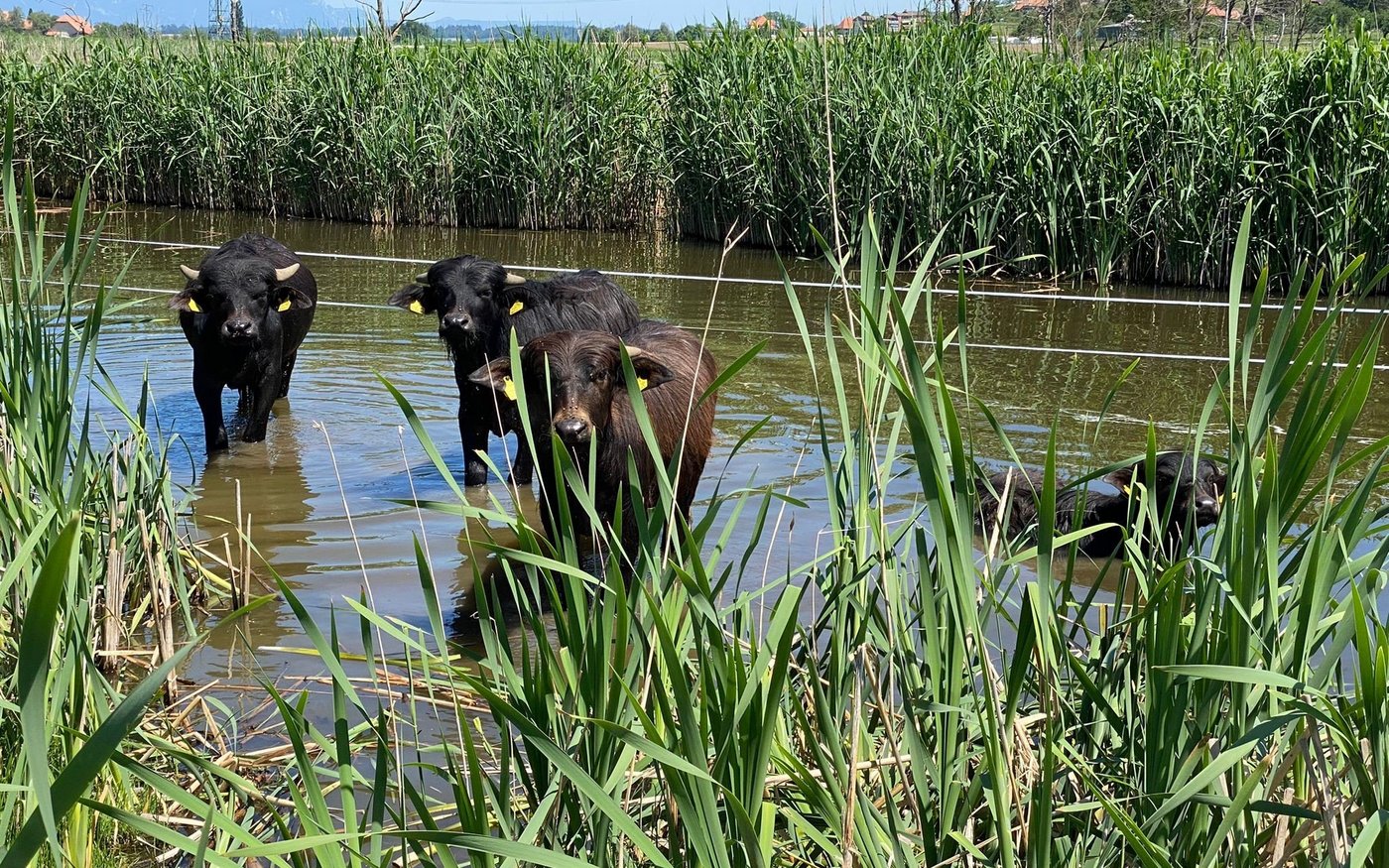 Weiter recherchierte er geeignete Weidetiere und organisierte dann in Eigenregie elf Wasserbüffel, welche diesen Sommer schliesslich im Rahmen des Pilotprojekts am Lobsigensee weideten. «Niemand wusste, ob das funktionieren würde und ob sich die Büffel auch wohlfühlen würden», erläutert der Junglandwirt. Zwischen Weide und See sei es so bodenlos und derart sumpfig, dass Bedenken im Raum standen, dass die Tiere stecken bleiben könnten.