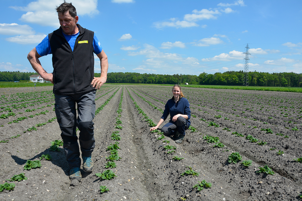 Michelle König und ihr Vater Rolf beteiligen sich an den Sortenversuchen von Swisspatat. Dabei werden neue Kartoffelsorten auch in der Praxis auf dem Feld getestet. (Bild Swisspatat).