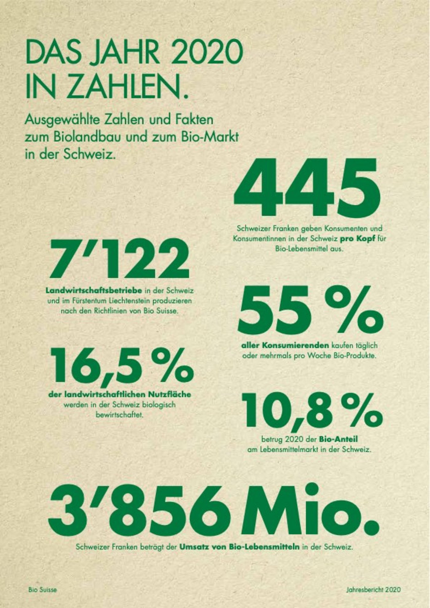 Höherer Absatz, höherer Pro-Kopf-Konsum, höherer Marktanteil, mehr Bio-Höfe – bei Bio Suisse geht es aufwärts, wie die neuen Zahlen für das von der Corona-Pandemie geprägte Jahr 2020 zeigen: