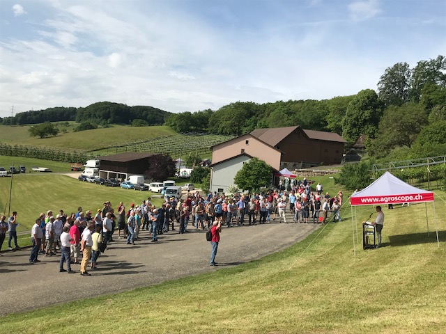 Bei düppigem Vorsommerwetter traf sich die Steinobstbranche am Sonntag im Breitenhof in Wintersingen BL zur traditionellen Fachtagung. Mehrere hundert Personen, darunter viele Produzenten und Produzentinnen waren versammelt, als Willy Kessler von Agroscope die Besucher auf dem Gelände des Versuchsbetriebs begrüsste.