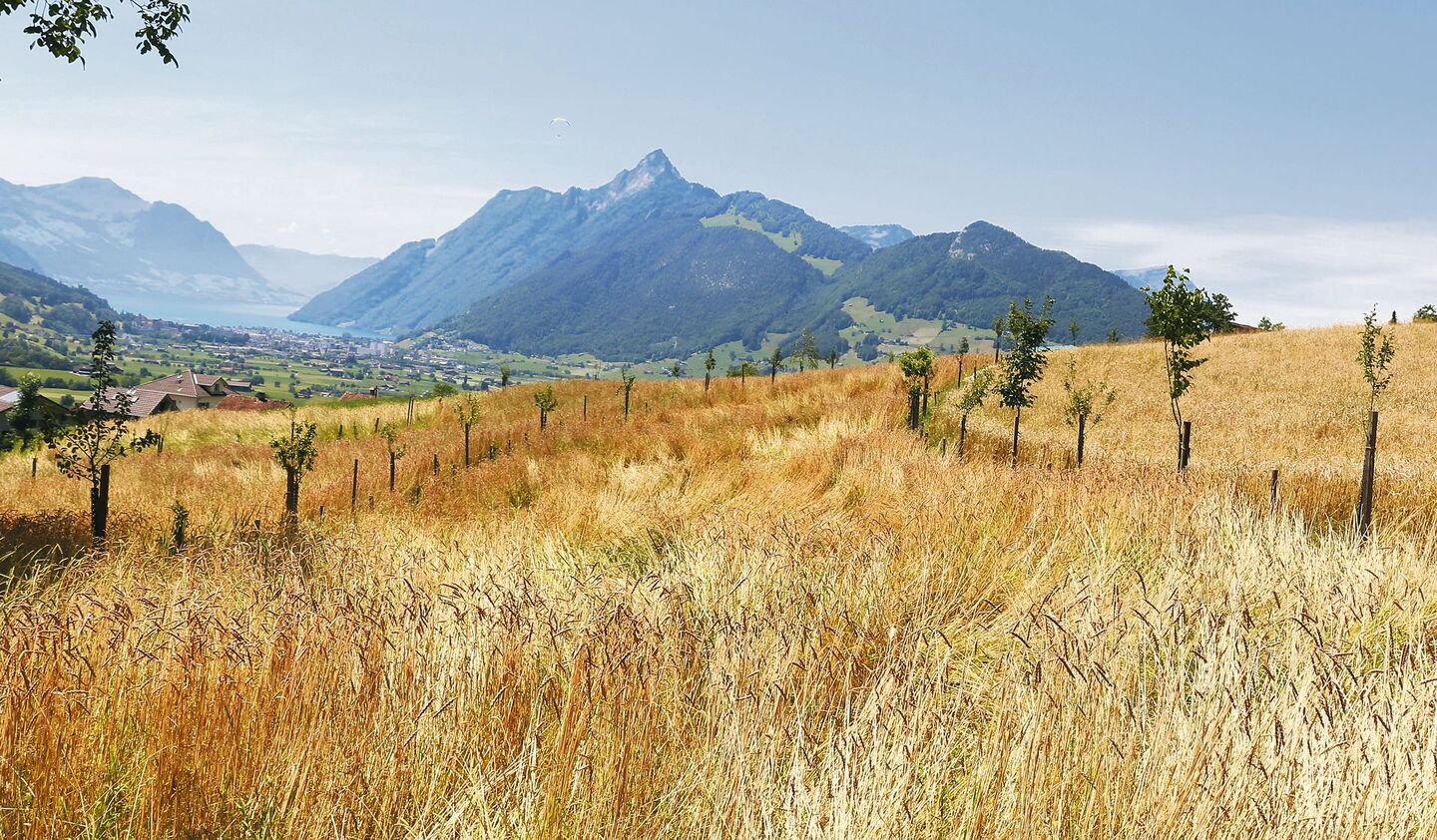 Die Jungbäume auf der Agroforstparzelle des Biohofes Husmatt präsentieren sich in der Entwicklung aktuell noch etwas bescheiden. Ganz im Gegensatz zum Enthusiasmus von Betriebsleiter Meinrad Betschart. Er zeigt sich begeistert vom System des dynamischen Agroforsts. Der Schwyzer Biolandwirt interessiert sich schon länger für alternative Bewirtschaftungssysteme und besuchte dazu Weiterbildungen im Bereich Permakultur. …