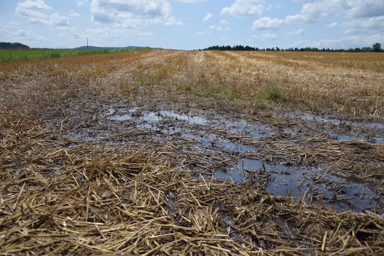 Stehendes Wasser in den Fahrgassen und deutlich sichtbare Reifenabdrücke auf dem Feld – in so nassen Jahren wie 2024 bietet sich vielerorts dieses Bild. «Man sieht allerdings, dass pfluglos bearbeitete Böden weniger Schaden genommen haben», bemerkt HAFL-Dozent Bernhard Streit. Wobei die oberflächlichen Spuren oft kosmetisch und bei einer normalen Stoppelbearbeitung nach der Ernte wieder ausgebügelt seien.