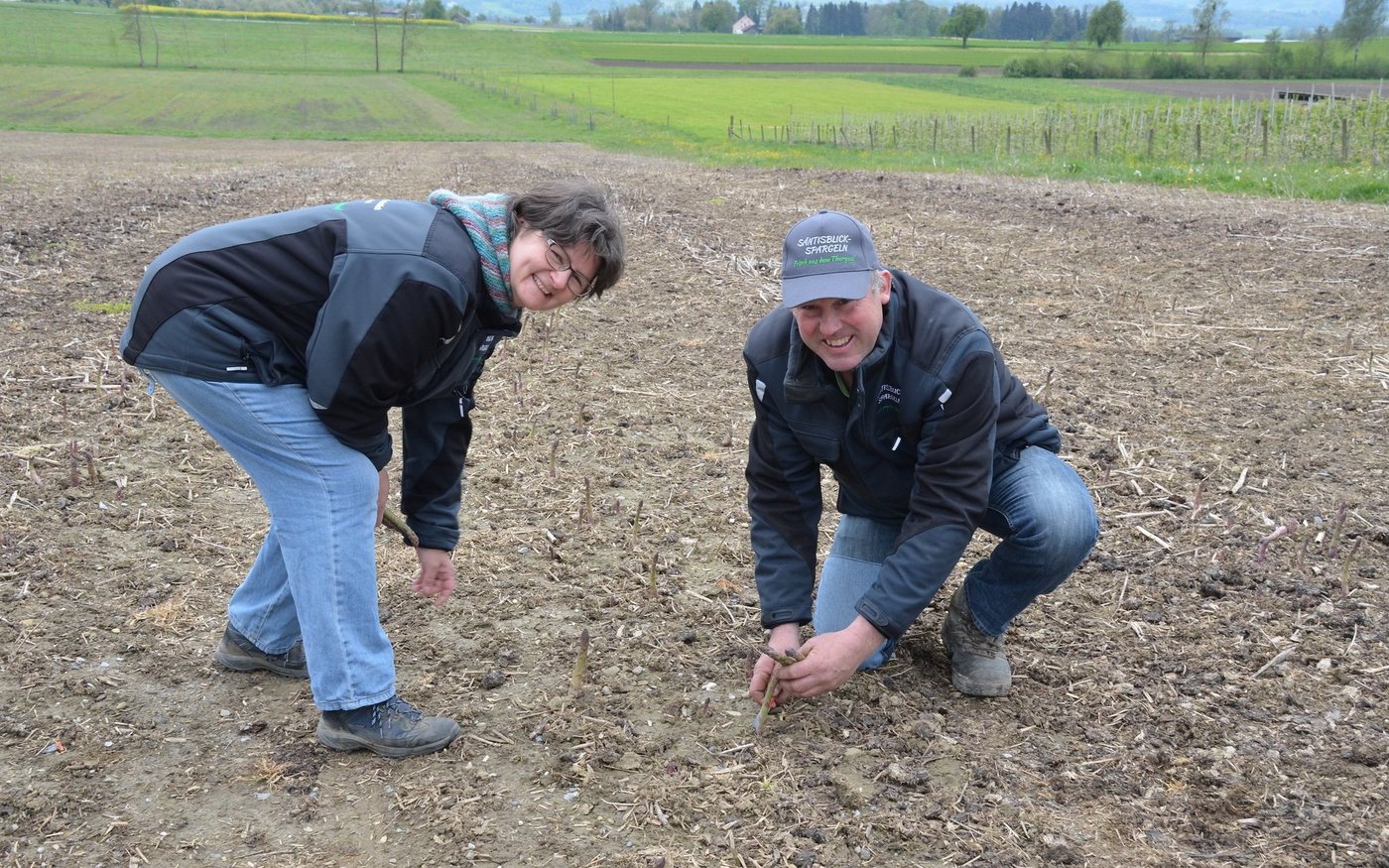 Ende April 2024, zum Zeitpunkt des Besuchs auf dem Hof von Dajana und Hansruedi Germann, ragen ihre grünen und violetten Spargeln nur mit geringem Wuchs aus der Erde heraus. In diesem Frühjahr konnte das Betriebsleiterpaar aufgrund der langen Kälteperiode bislang nur kleine Mengen an Spargeln ernten. Der Mai solls richten Germanns setzen seit 15 Jahren auf den Anbau ihrer «Säntisblick»-Spargeln. Diese…