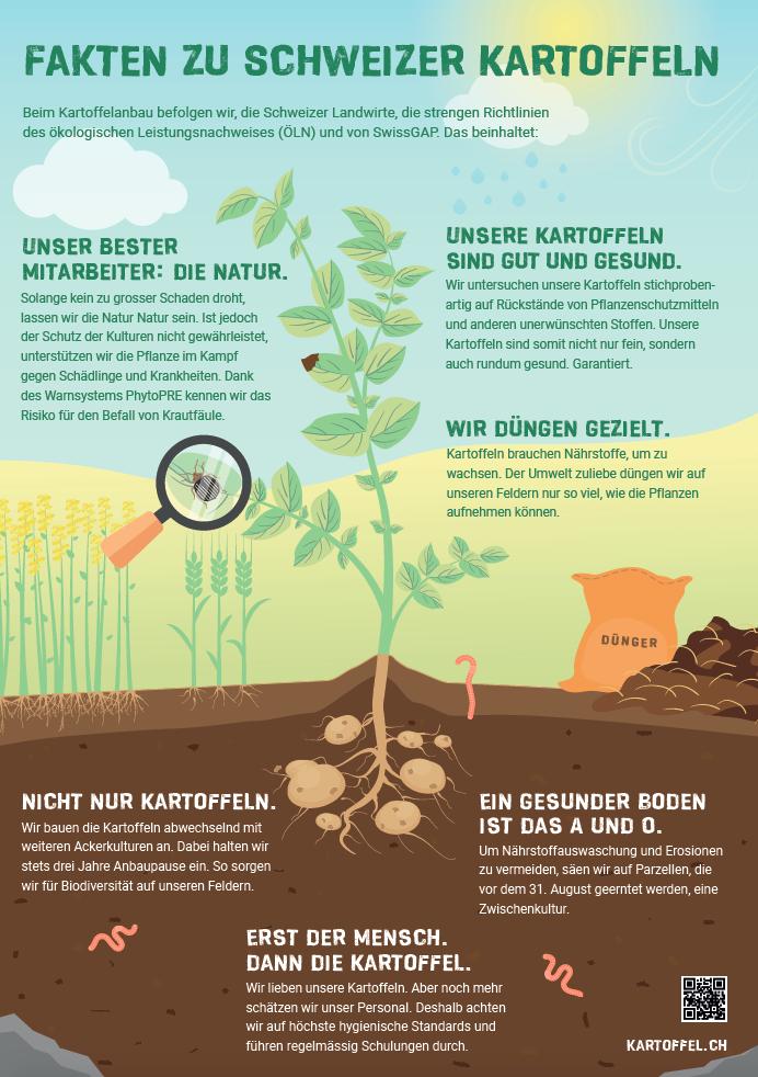 Auch Rückstände von Pflanzenschutzmitteln, Schädlinge und Düngung werden thematisiert, wie Swisspatat in einer Mitteilung schreibt.